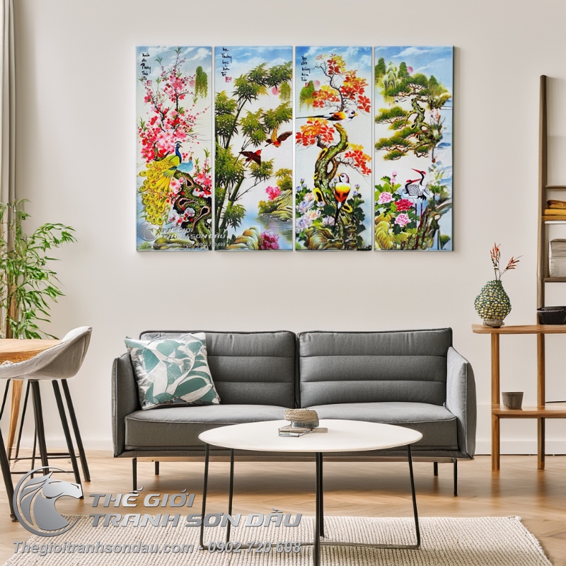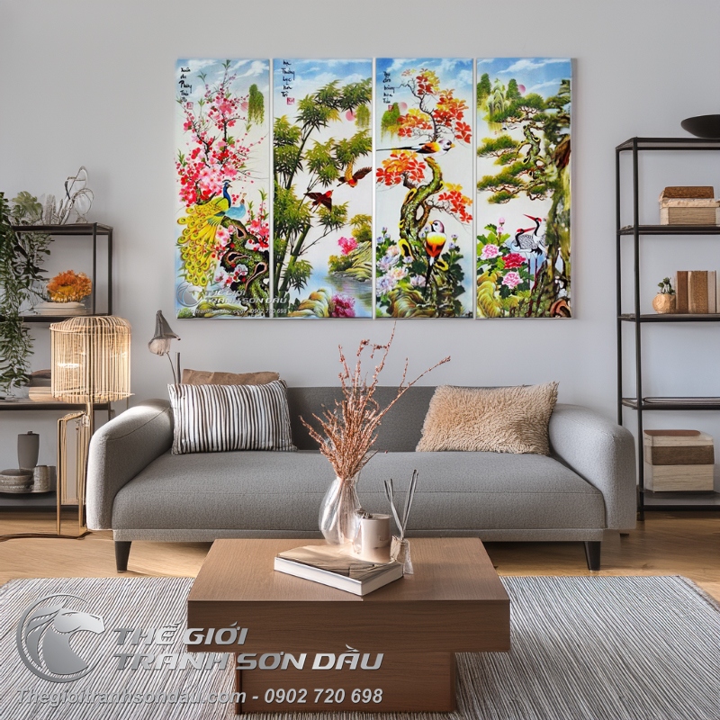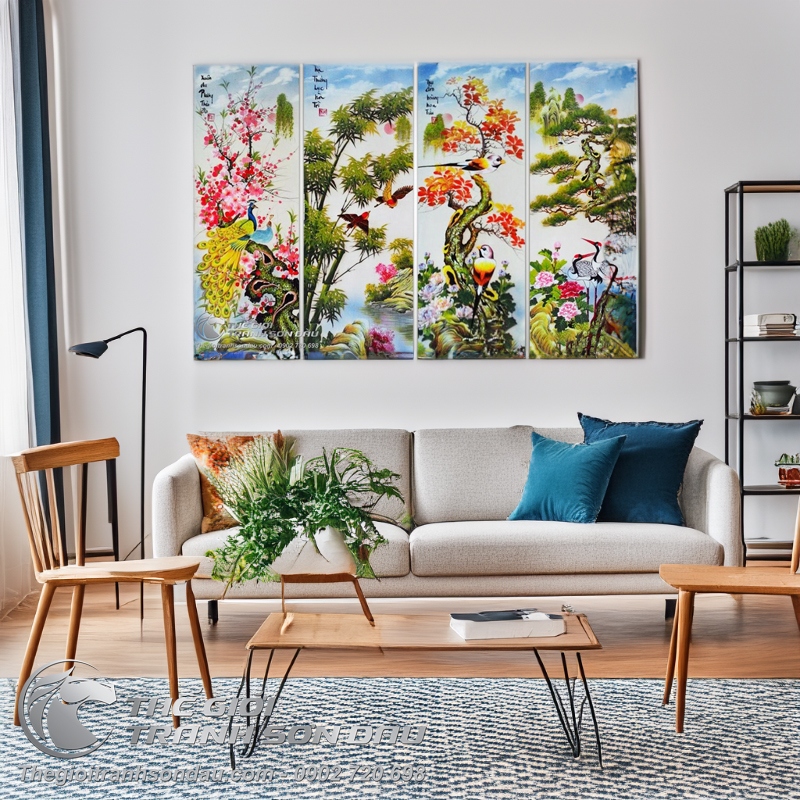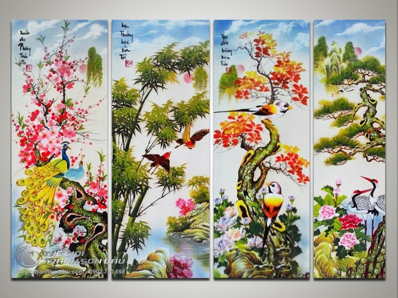 Bộ tranh tứ bình Đào Trúc Cúc Tùng vẽ sơn dầu
