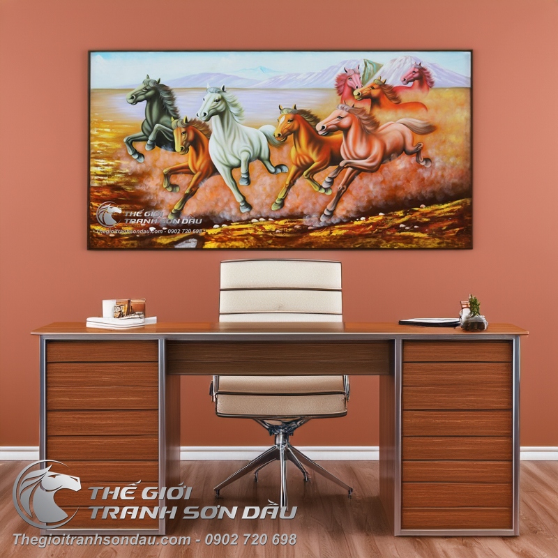 Tranh Bát Mã Truy Phong Cho Gia Chủ Mạng Kim