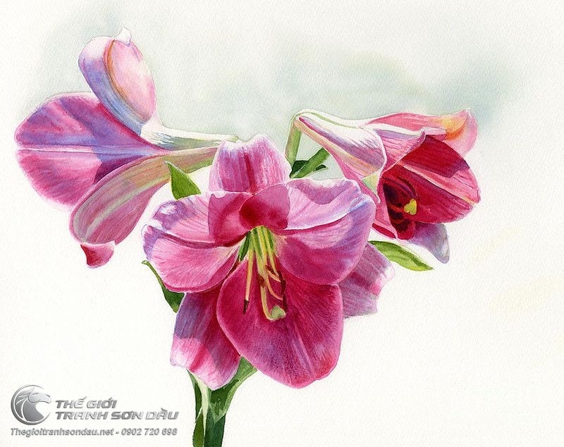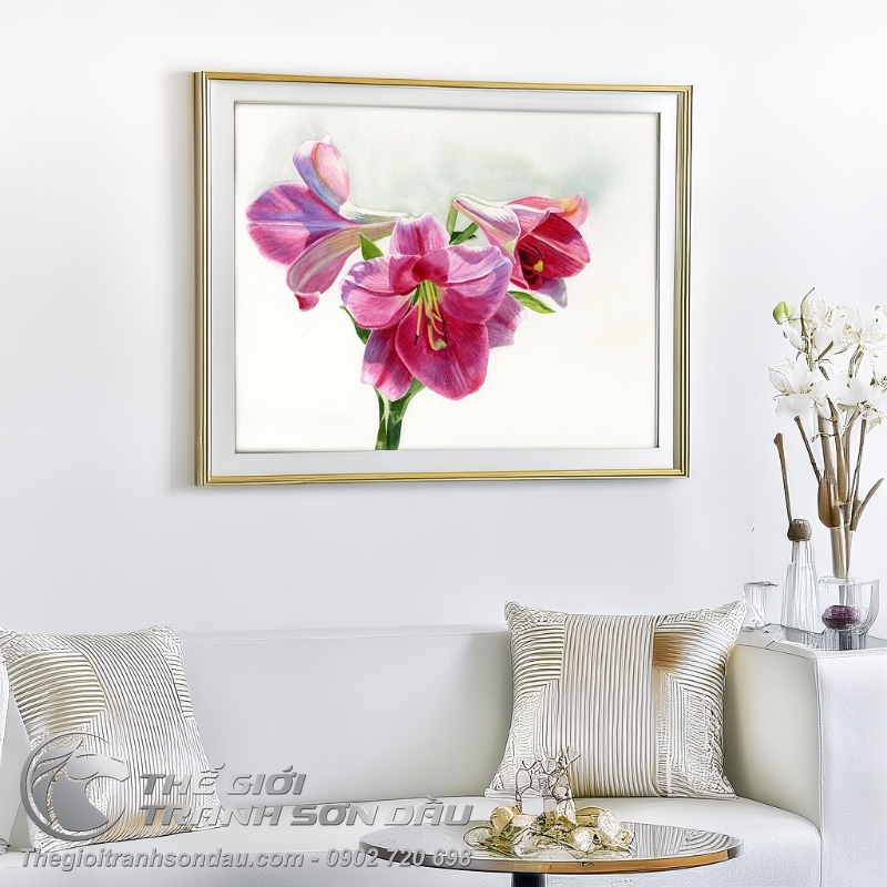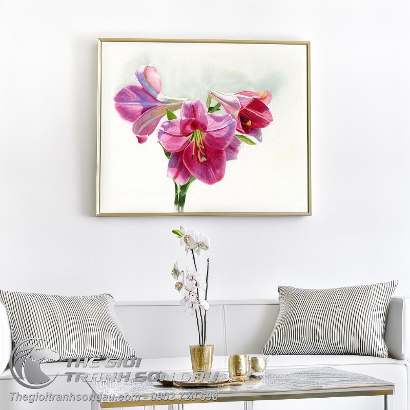 Tranh Cành Hoa Lan Hồng Tả Thực