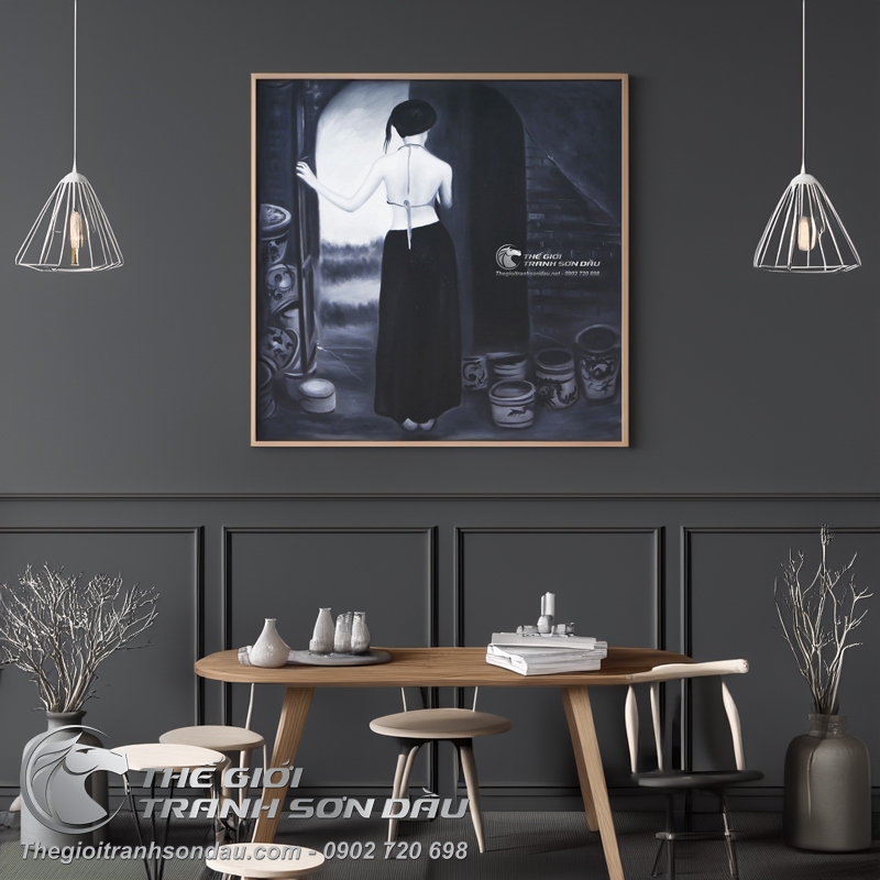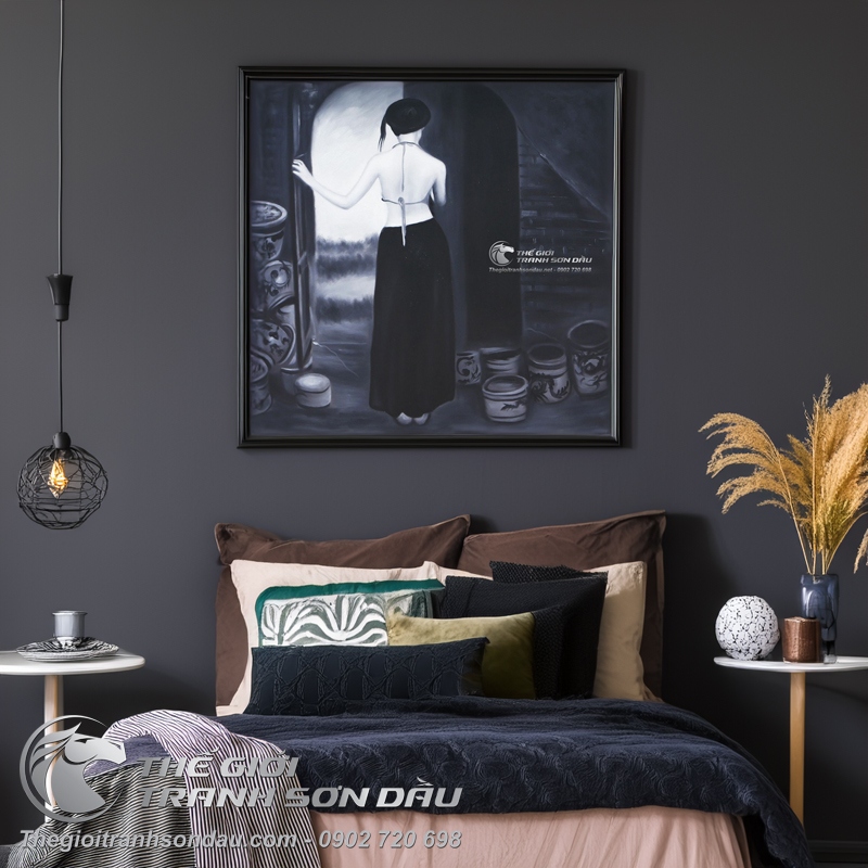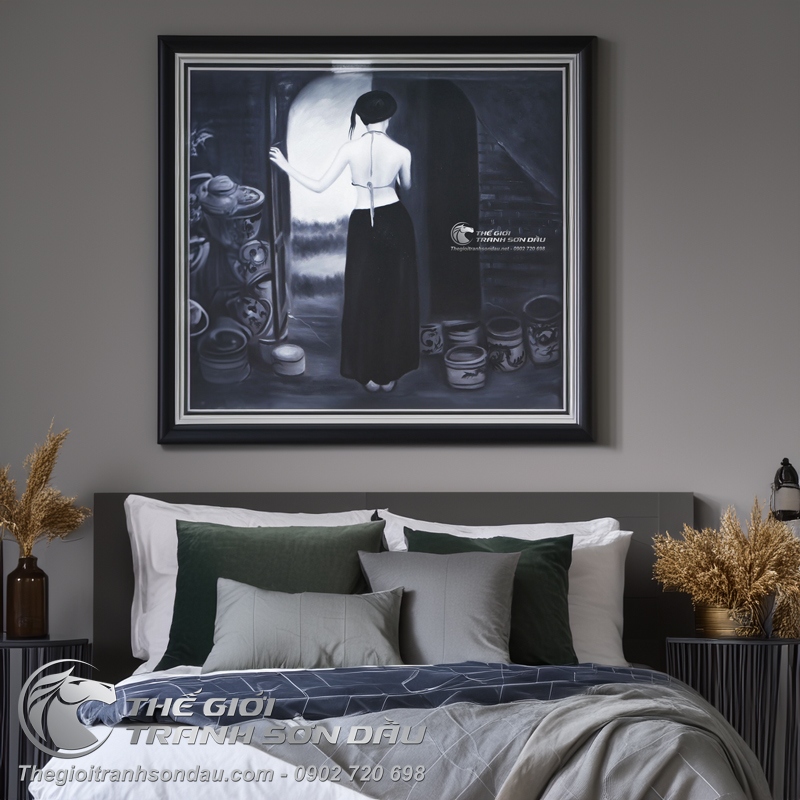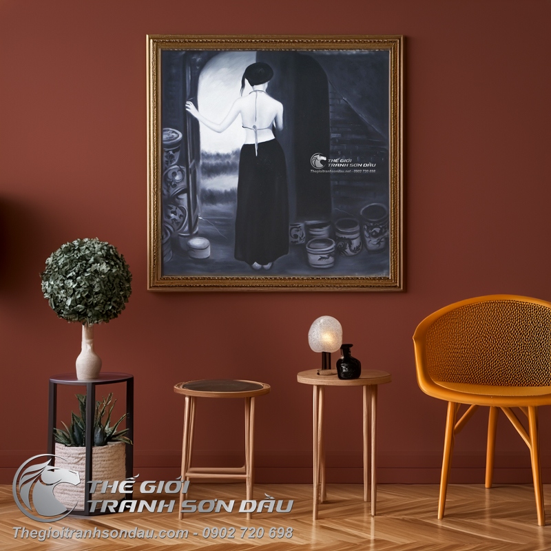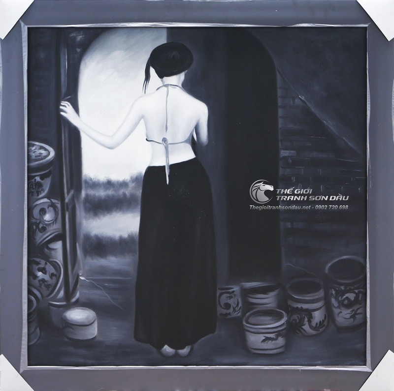 Tranh Sơn Dầu Thiếu Nữ Mặc Áo Yếm Khoe Lưng Trần Nghệ Thuật
