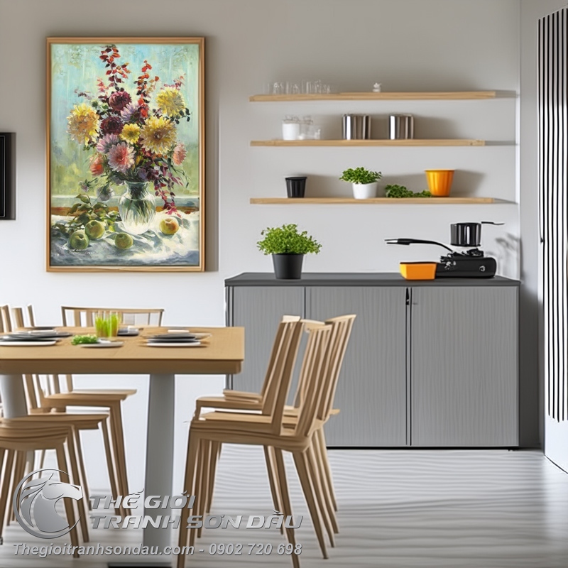 Tranh Vẽ Sơn Dầu Bình Hoa Cúc Đẹp Giá Rẻ