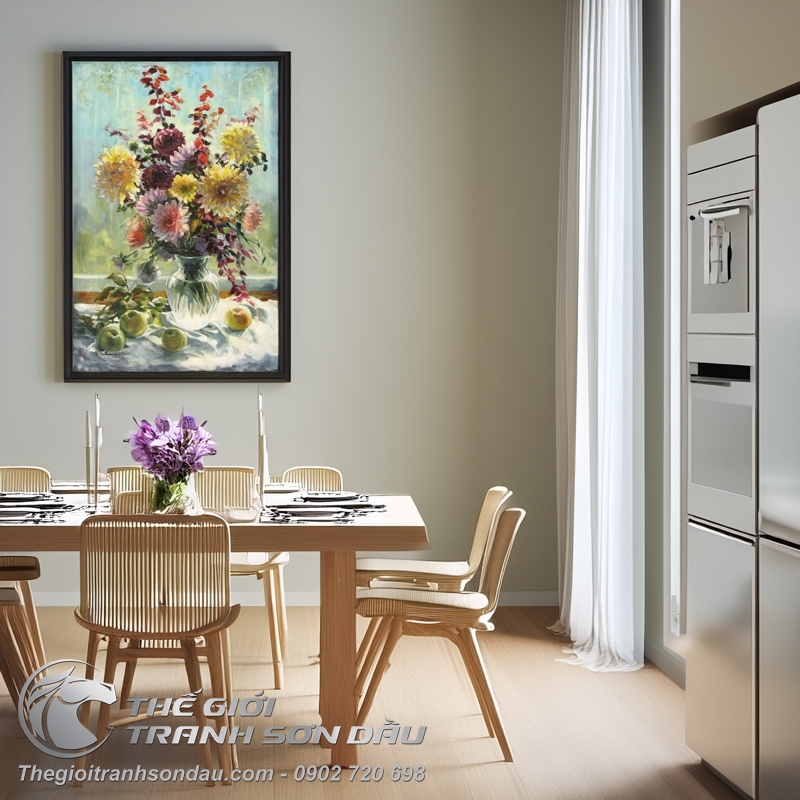 Tranh Sơn Dầu Vẽ Bình Hoa Trang Trí Đẹp