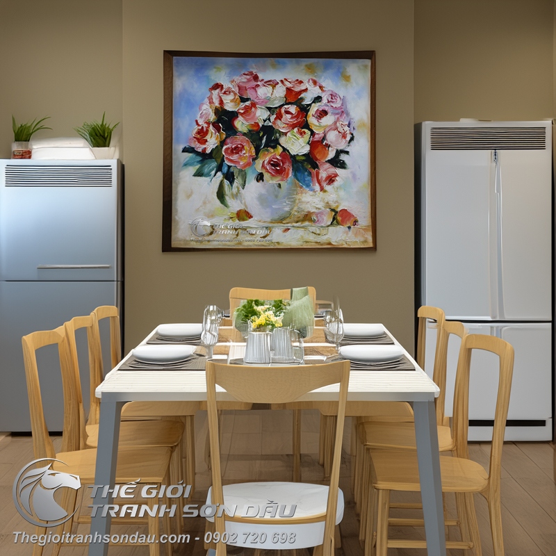 Tranh Vẽ Nghệ Thuật Bình Hoa Chất Liệu Sơn Dầu