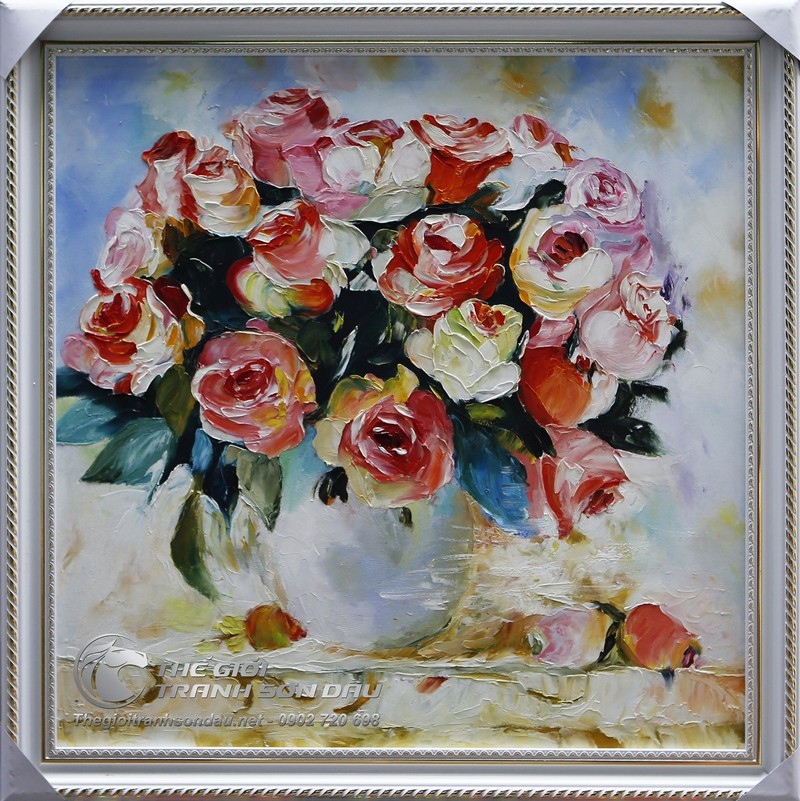 Tranh Vẽ Tĩnh Vật Bình Hoa Nở Dày Màu