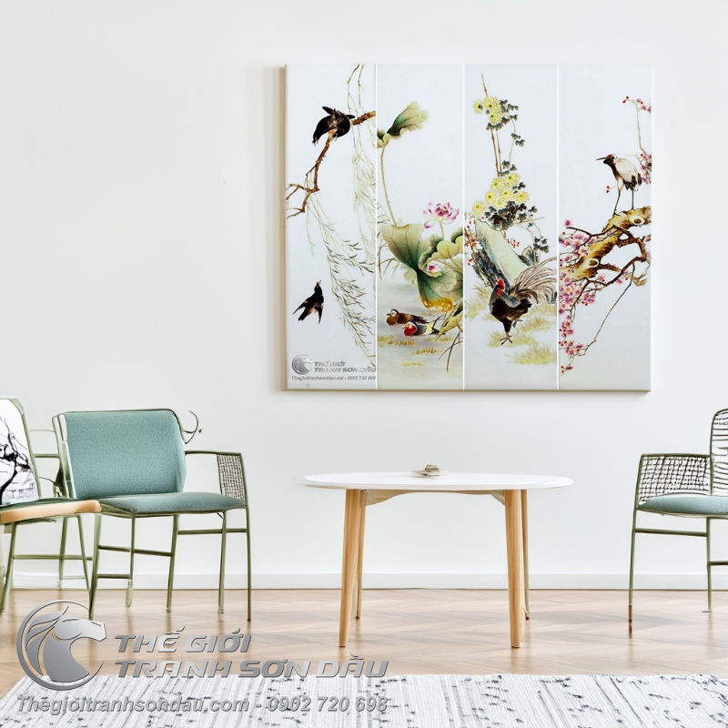 Tranh Bộ Tứ Quý Chim Gà Vịt Sếu và Hoa