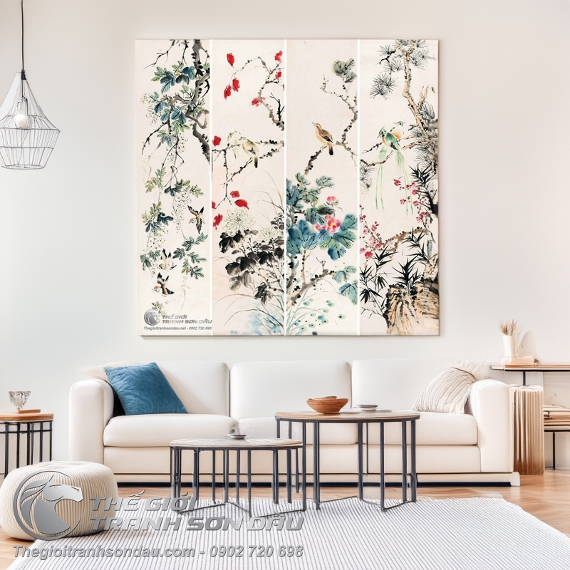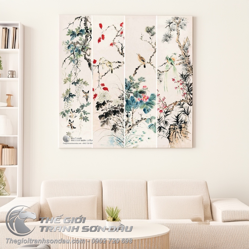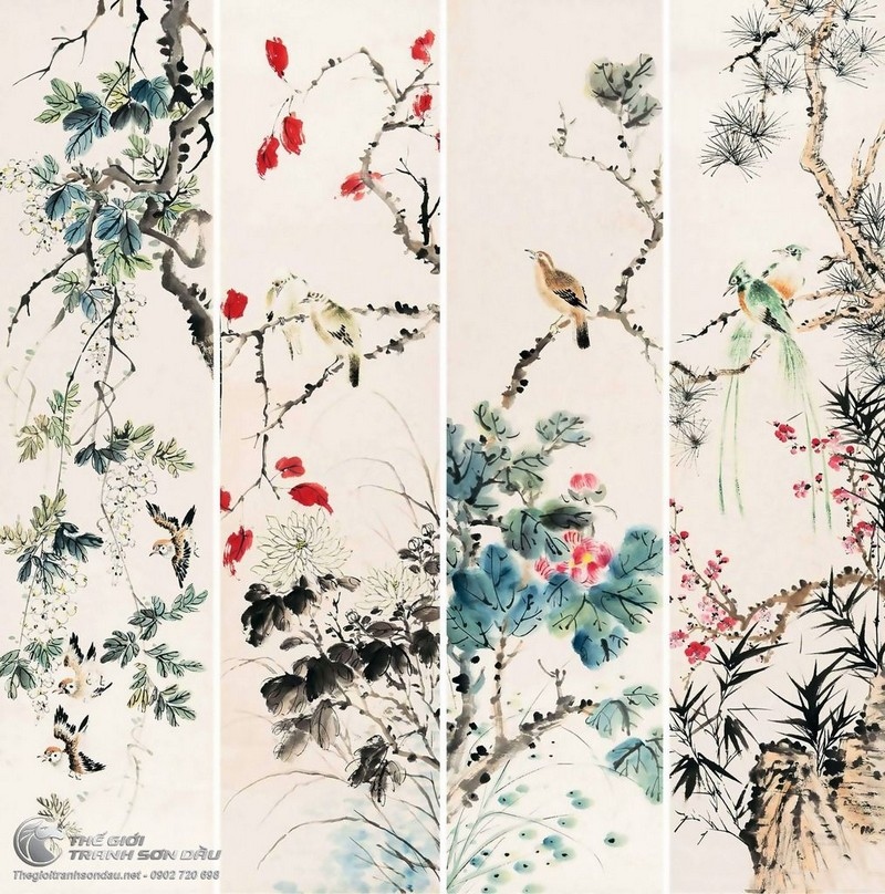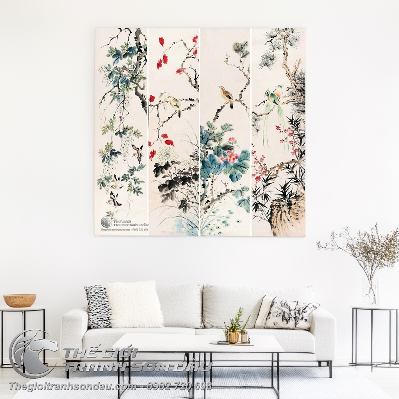 Tranh Bộ Tứ Quý 4 Loại Chim Và Hoa