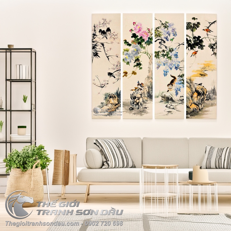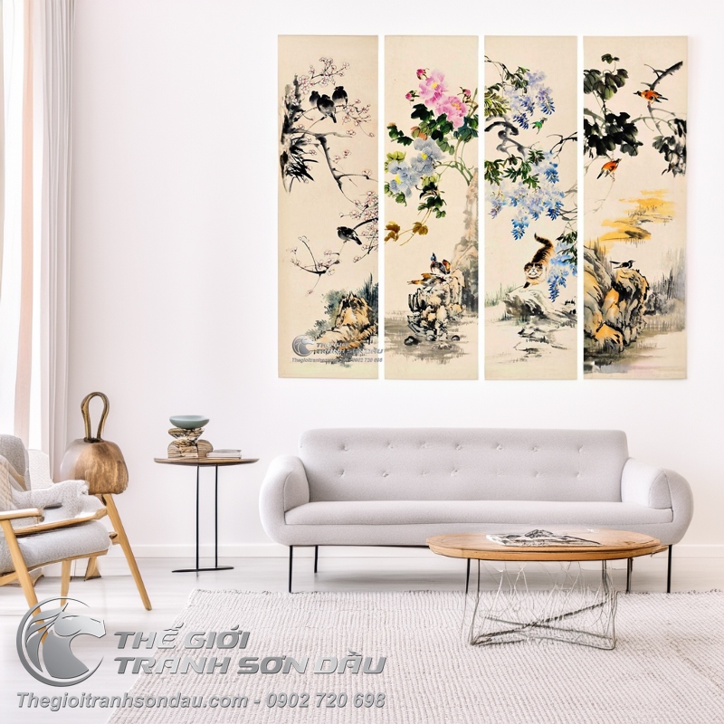 Tranh Bộ Tứ Quý Mai Mẫu Đơn Anh Đào 4 Tranh