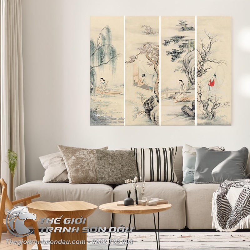 Tranh Bộ Tứ Quý Thiếu nữ Xinh đẹp