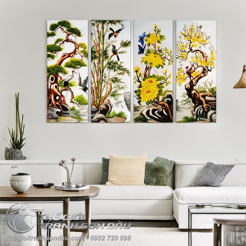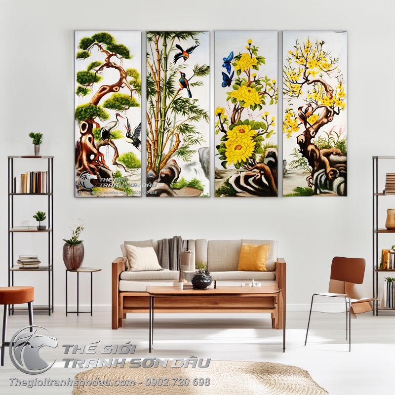 Tranh bộ tứ quý Tùng Cúc Trúc Mai