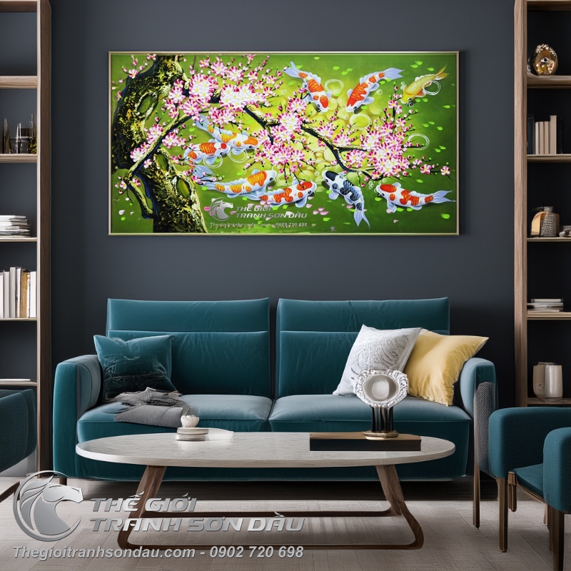 - Từ những nét vẽ tài hoa với những chi tiết độc đáo, tất cả đã tạo ra một bức tranh sơn dầu rực rỡ sắc màu và ẩn chứa nhiều ý nghĩa bên trong nó. Vì thế, bức họa này không chỉ là một món đồ nội thất trang trí cho ngôi nhà mà nó còn là một món đồ phong thủy giúp gia đình luôn hòa hợp, sung túc, thịnh vượng và thành công trong cuộc sống.