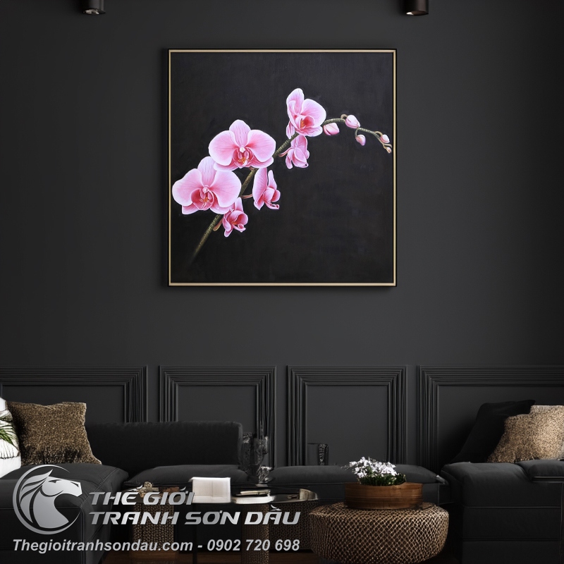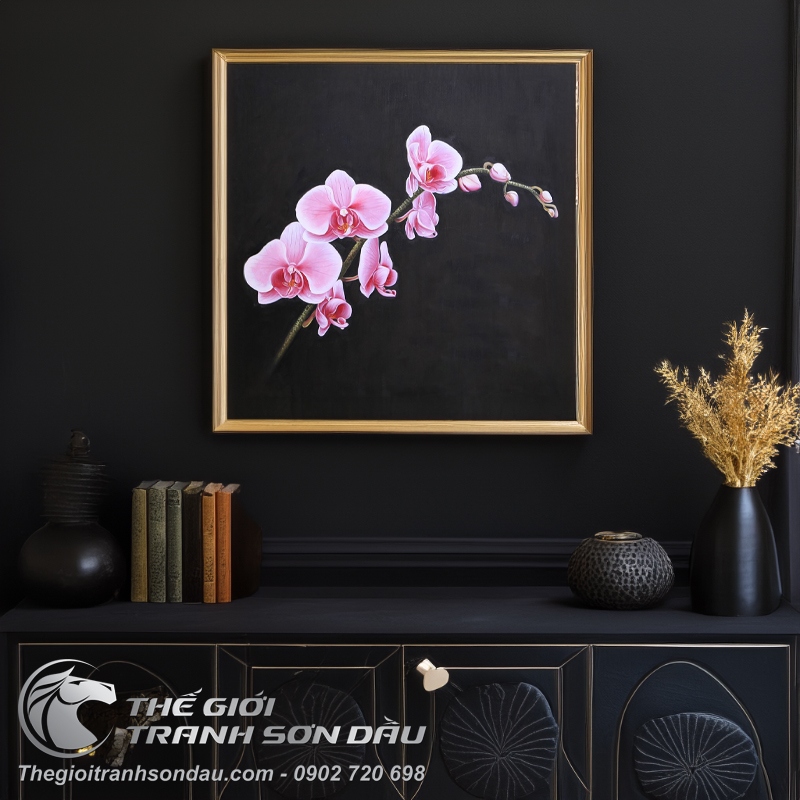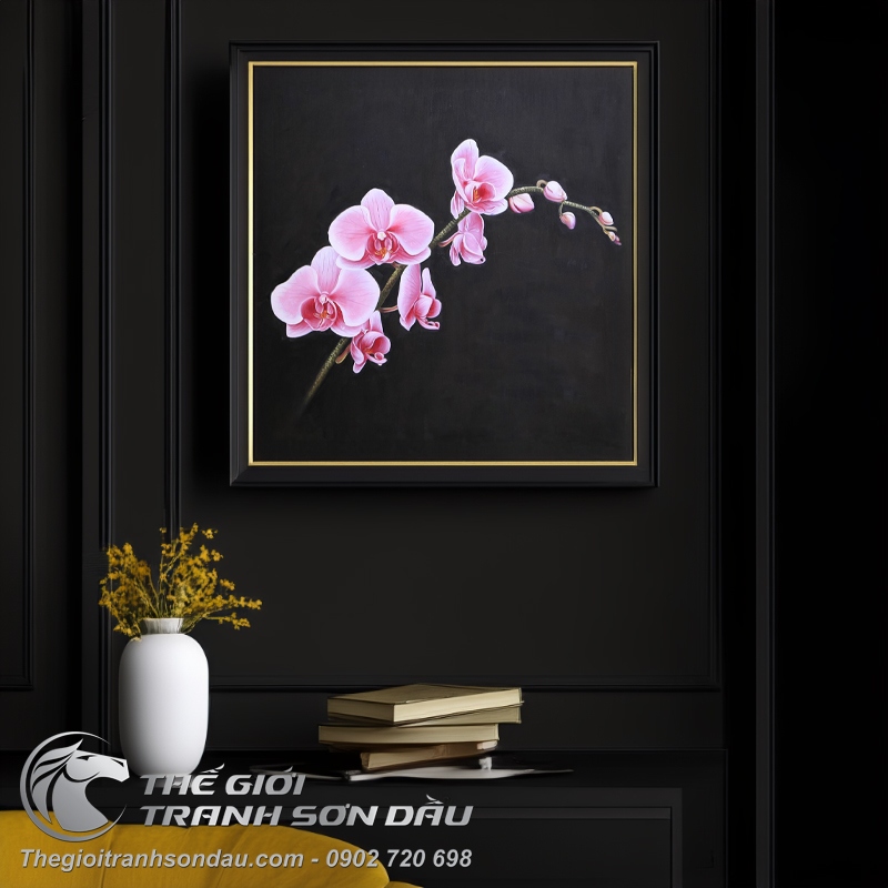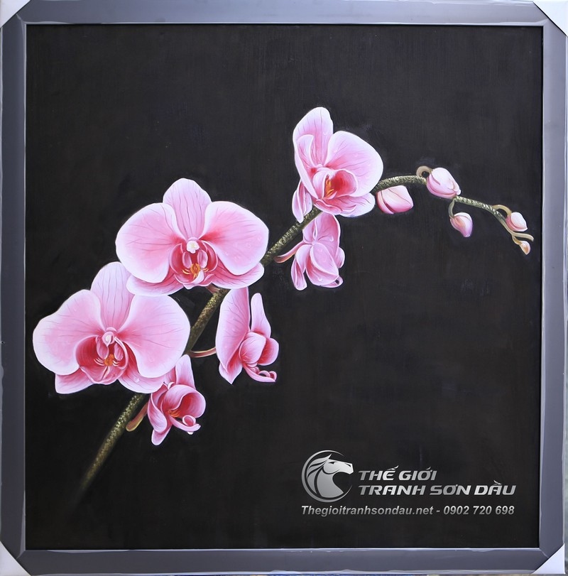 Tranh Cành Hoa Lan Hồng Tả Thực
