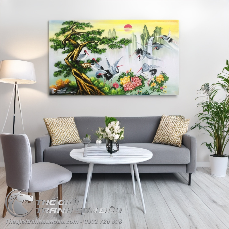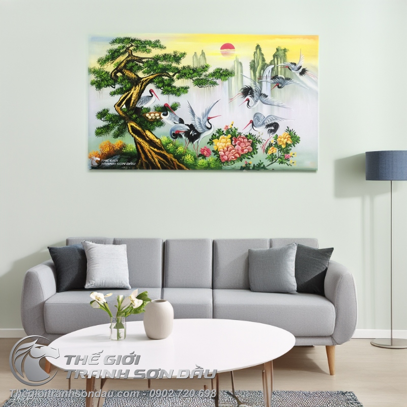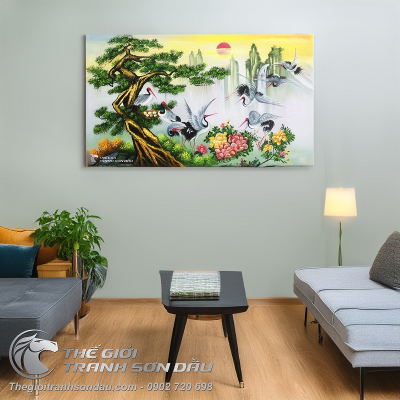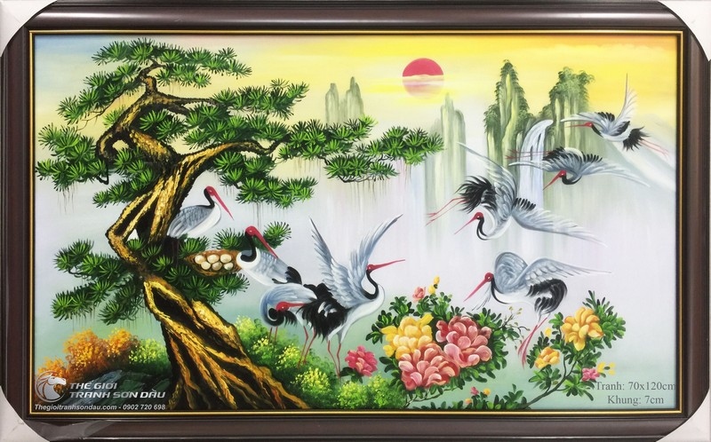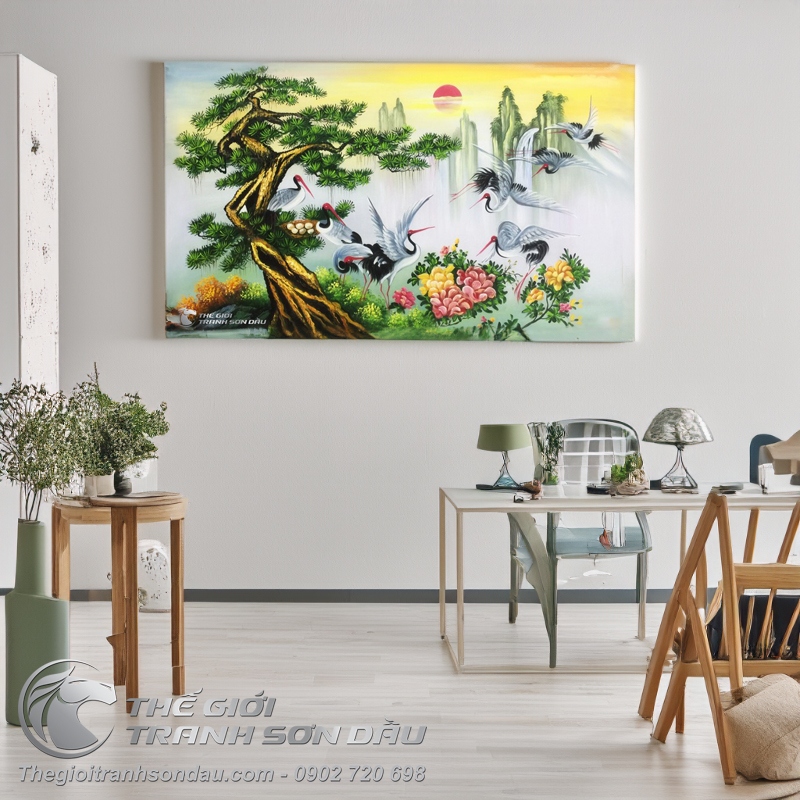 Tranh Cây Tùng Và Đàn Chim Hạc Tám Con
