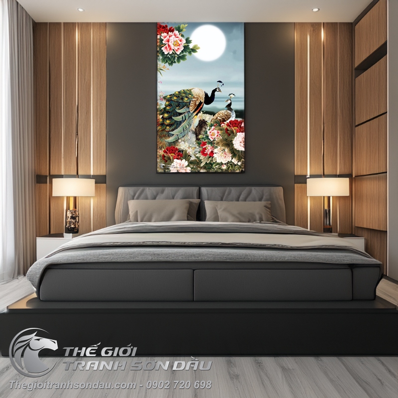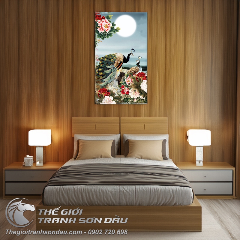 Tranh Chim Công Uyên Ương Bên Hoa Mẫu Đơn Dành Cho Đám Cưới