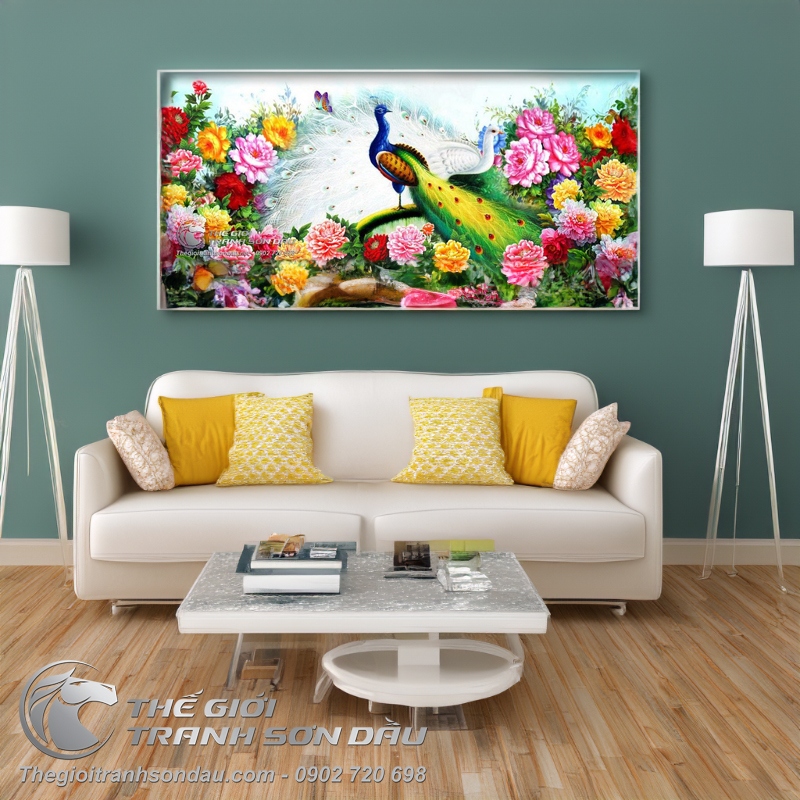 Tranh Sơn Dầu Đôi Công Uyên Ương Đẹp