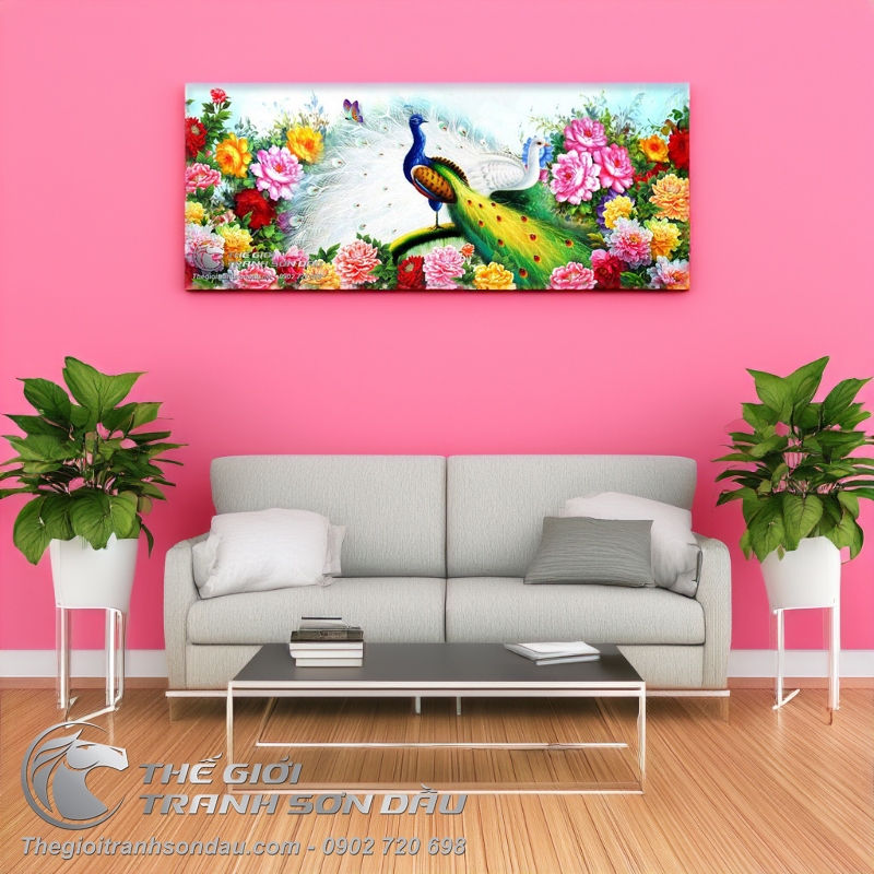 Tranh Chim Công và Hoa Mẫu Đơn Vẽ Màu Sơn Dầu Nhập Khẩu