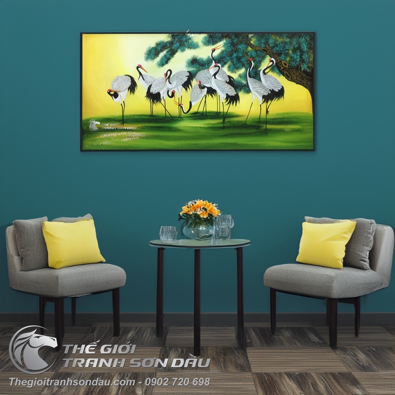 Tranh Cây Tùng Và Đàn Chim Hạc Tám Con