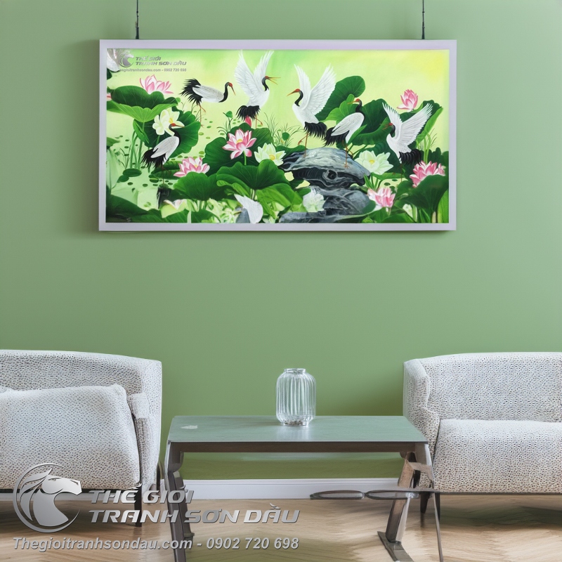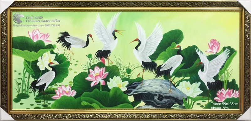 Tranh Sơn Dầu Đôi Cò Đang Đi Kiếm Ăn