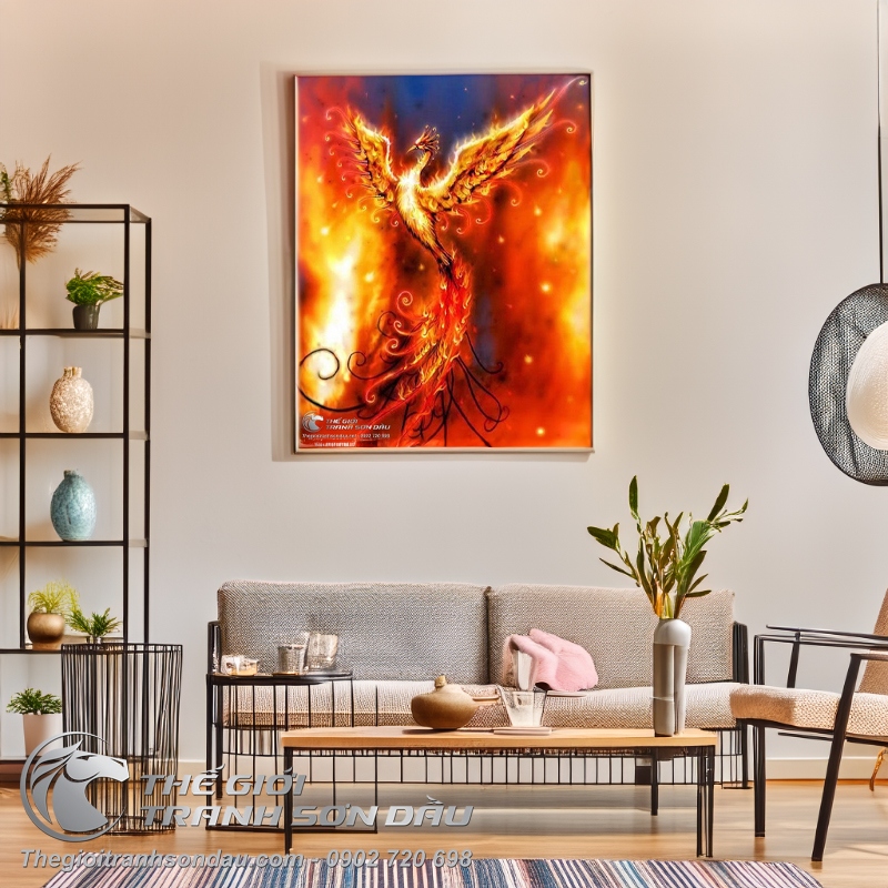 Tranh Sơn Dầu Chim Phượng Hoàng Lửa