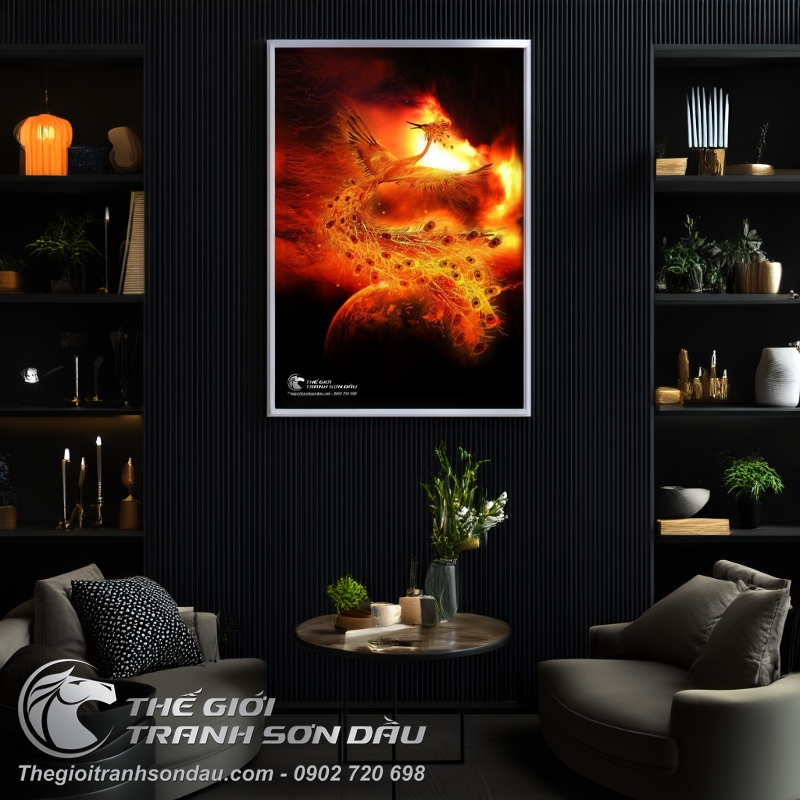 Tranh Sơn Dầu Chim Phượng Hoàng Lửa