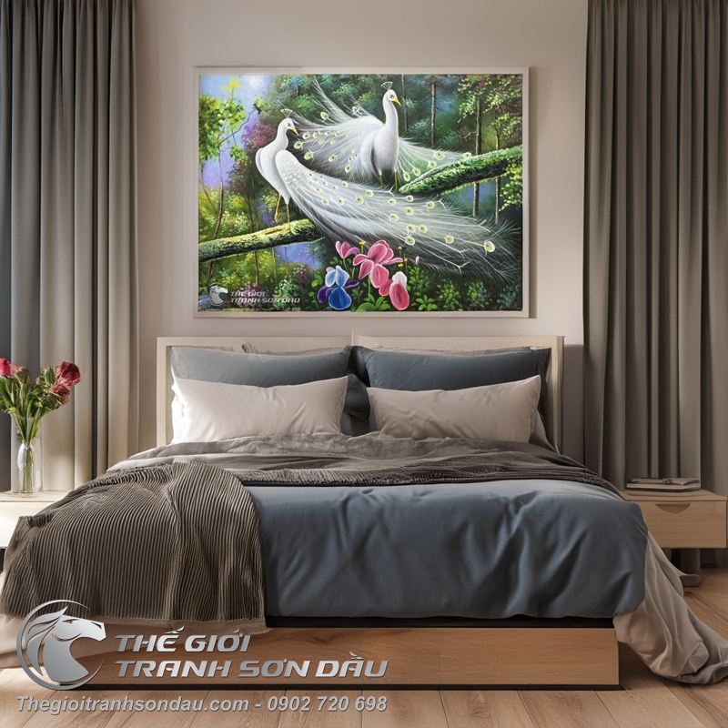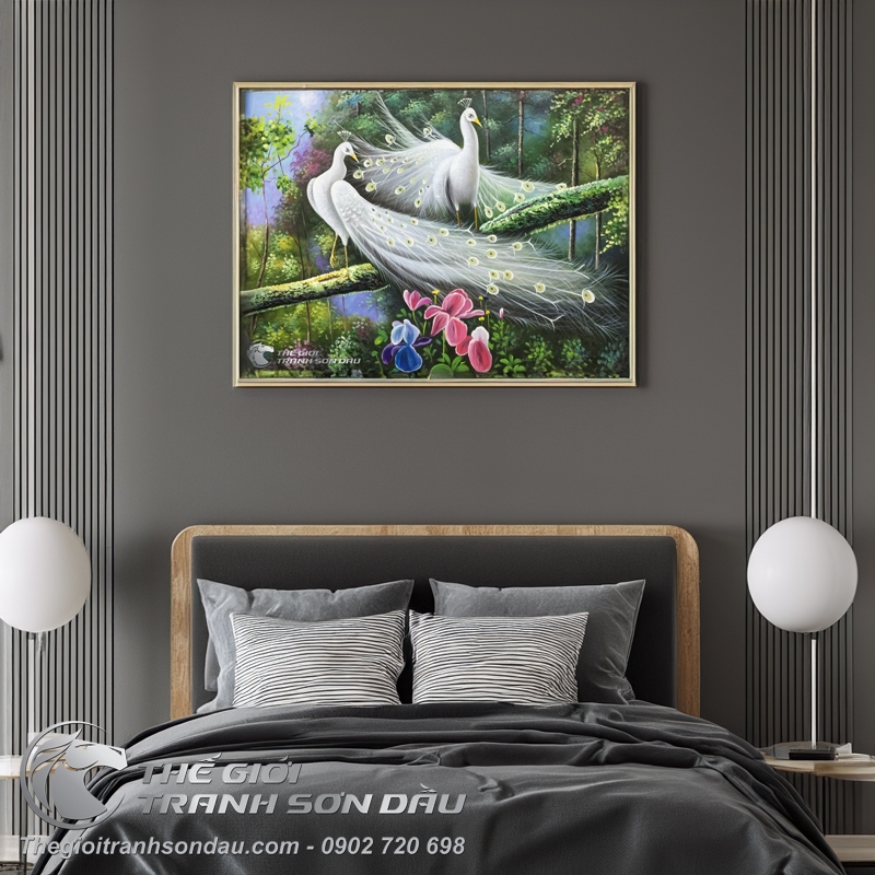 Tranh Đôi Chim Công Trắng Chất Lượng Cao Giá Thành Tốt