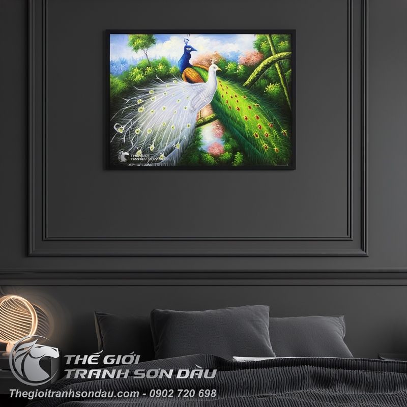 Tranh Sơn Dầu Đôi Công Uyên Ương Đẹp