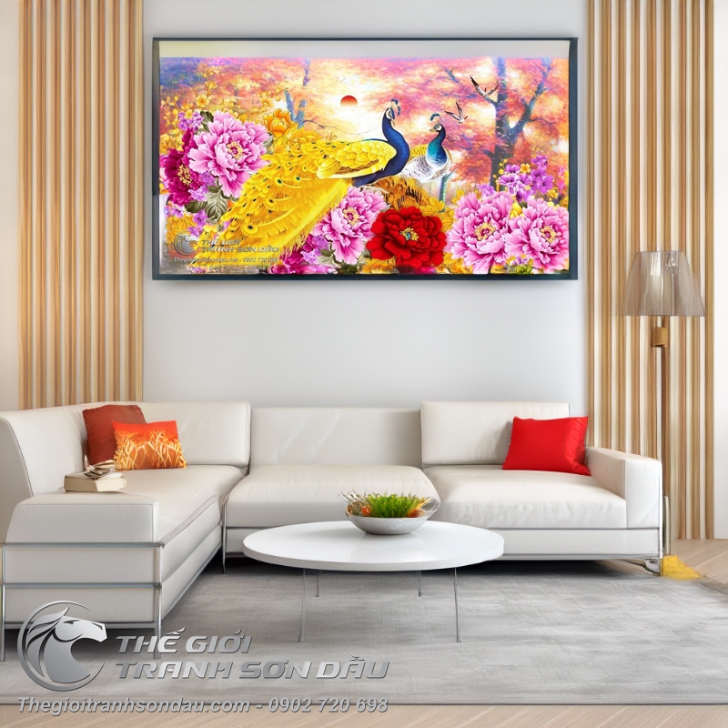 Tranh Sơn Dầu Đôi Công Uyên Ương Đẹp