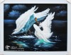 - Bằng việc tinh tế trong việc lựa chọn một phông nền đen của cảnh trời đêm kết hợp với những nét vẽ đầy tự nhiên và mềm mượt, người họa sĩ đã tạo ra một khung cảnh hồ nước trong một không gian rộng lớn bao phủ bởi một màu đen huyền bí để rồi làm nổi bật lên hình ảnh của đôi thiên nga với bộ lông trắng tinh khôi mềm mượt vô cùng đẹp đẽ và diễm lệ, là hình ảnh duy nhất tỏa sáng trong bức tranh.
