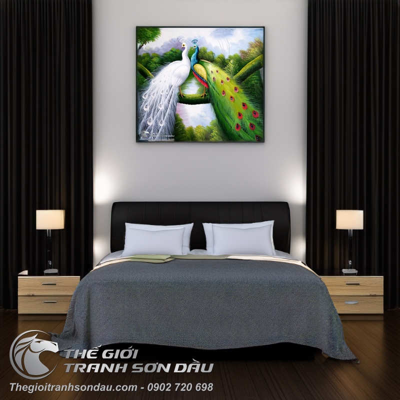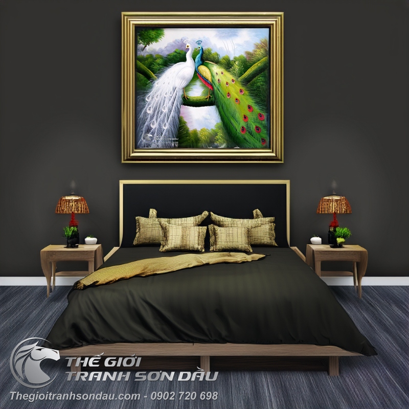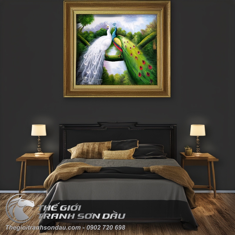 Tranh Sơn Dầu Đôi Công Uyên Ương Đẹp