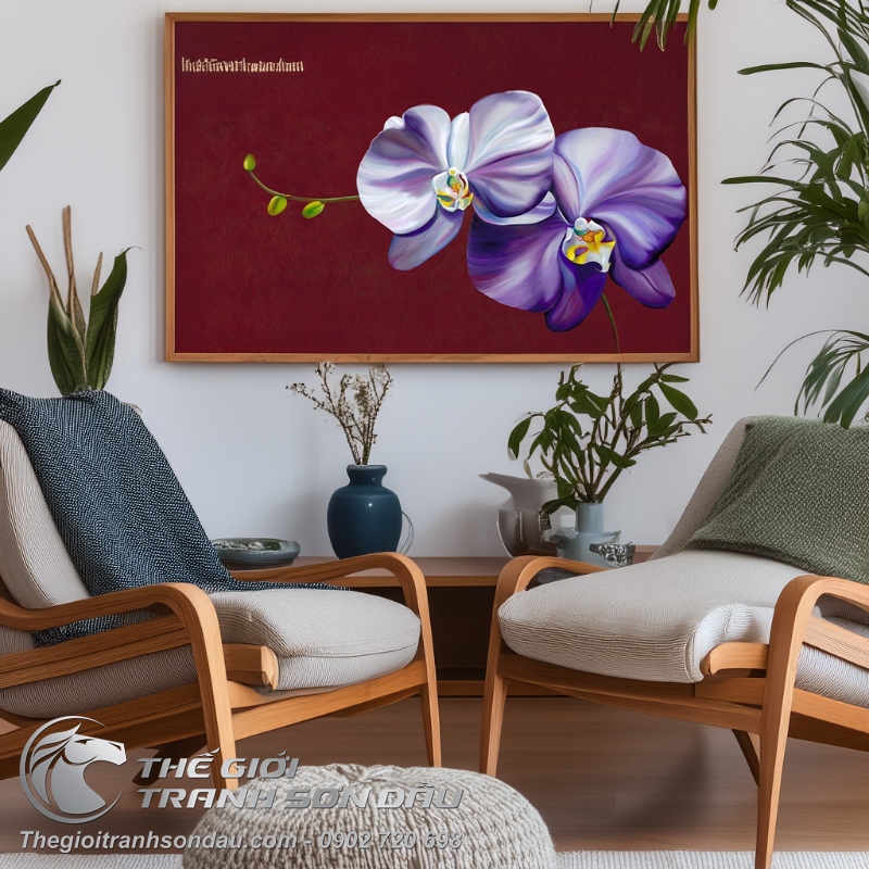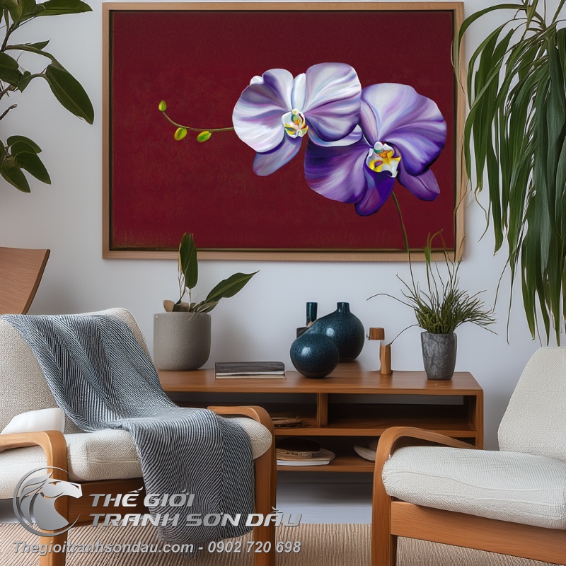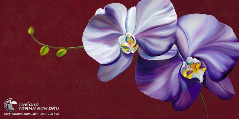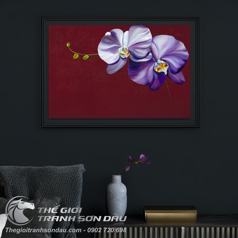 Tranh Sơn Dầu Vẽ Hoa Lan Tím Sang Trọng