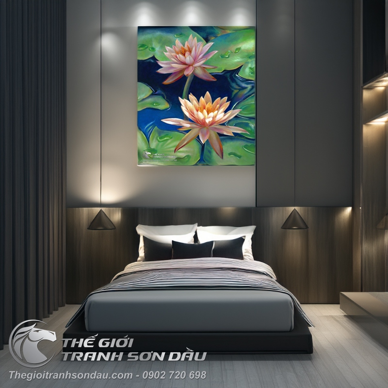 Tranh Sơn Dầu Hoa Sen Khổ Dọc