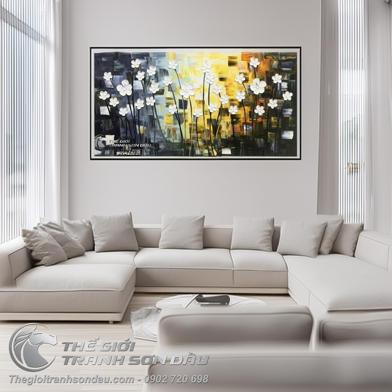 - Bức tranh hoa vô cùng thích hợp để treo ở phòng khách, phòng bếp, phòng làm việc, phòng ngủ hay để thay thế như một món quà sang trọng mà độc đáo để tạo cảm giác tươi mới, hay chỉ đơn giản là để thỏa mãn sở thích của những con người yêu hoa.