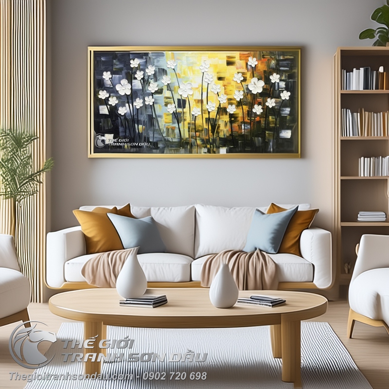 - Với những người yêu thiên nhiên, yêu những sắc hoa tươi đẹp, họ luôn muốn đắm chìm vào những hình ảnh của cỏ cây hoa lá, thế nhưng với một không gian chật hẹp thì việc lựa chọn những bức tranh phong cảnh hoa hiện đại lá sẽ là một giải pháp tối ưu nhất. Không chỉ mang lại vẻ đẹp độc đáo cho ngôi nhà mà còn tạo ra một không gian gần gũi với thiên nhiên và tràn ngập những sắc hoa.