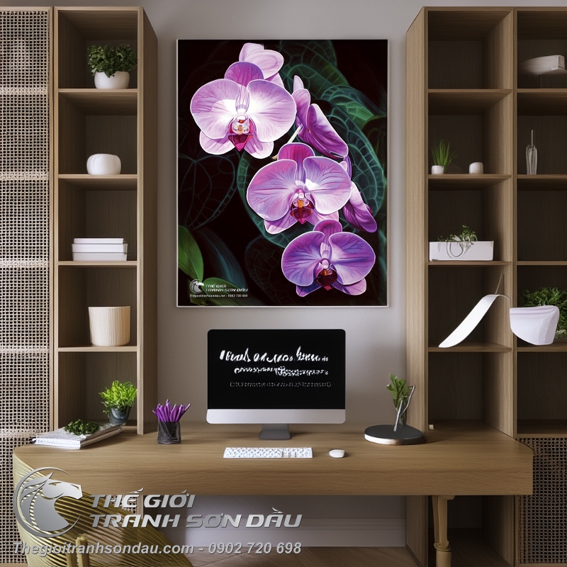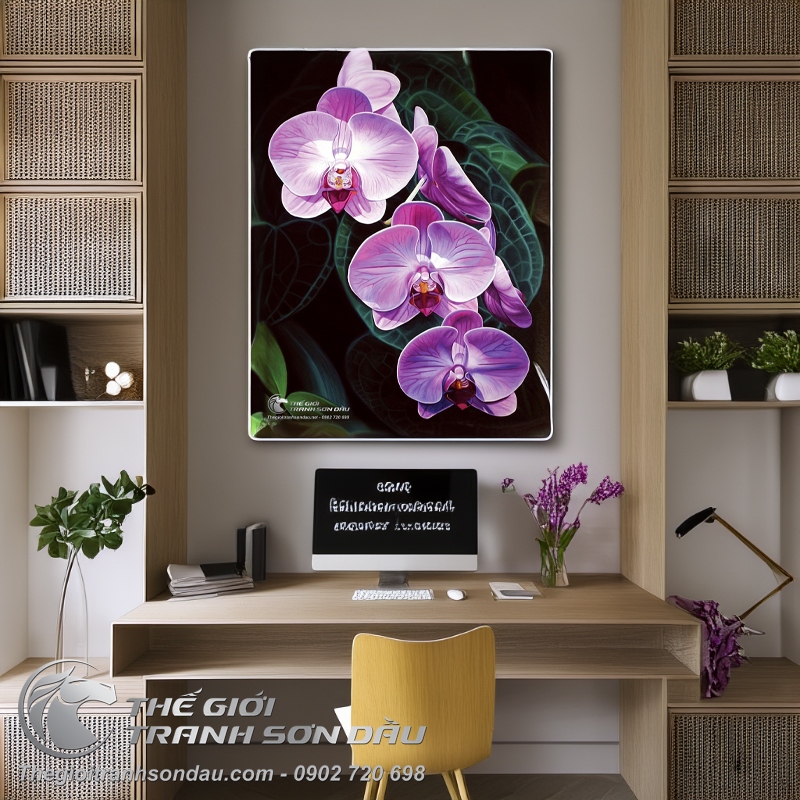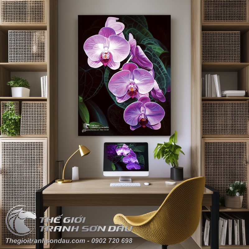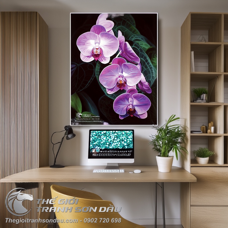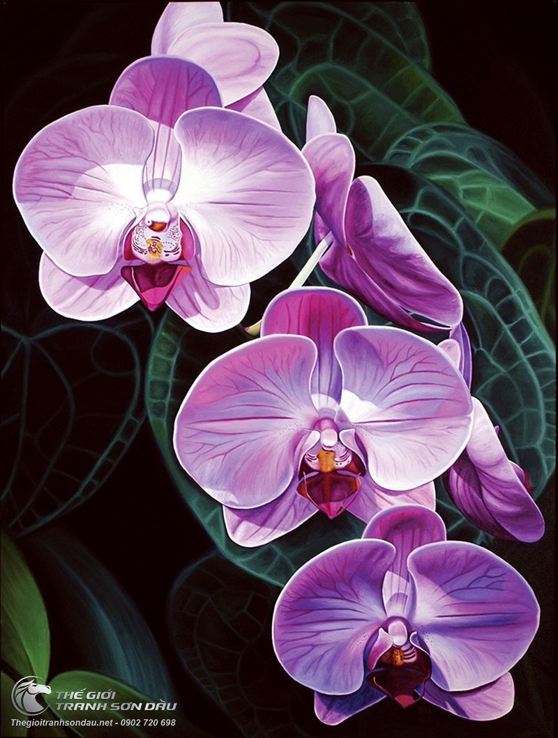 Tranh Sơn Dầu Vẽ Hoa Lan Tím Sang Trọng