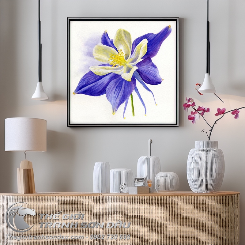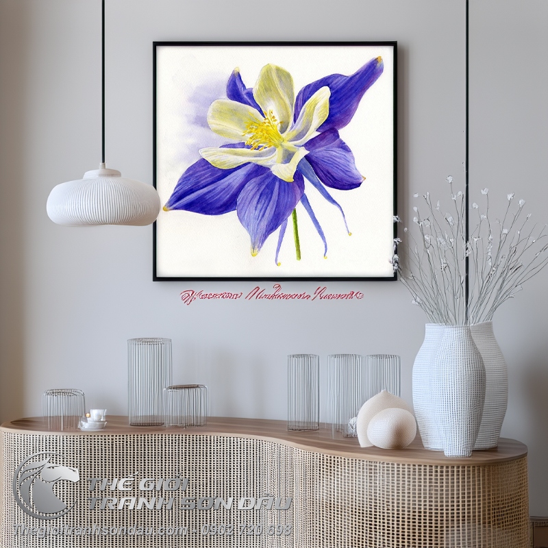 Tranh Hoa Lan Tím và Những Hạt Sương