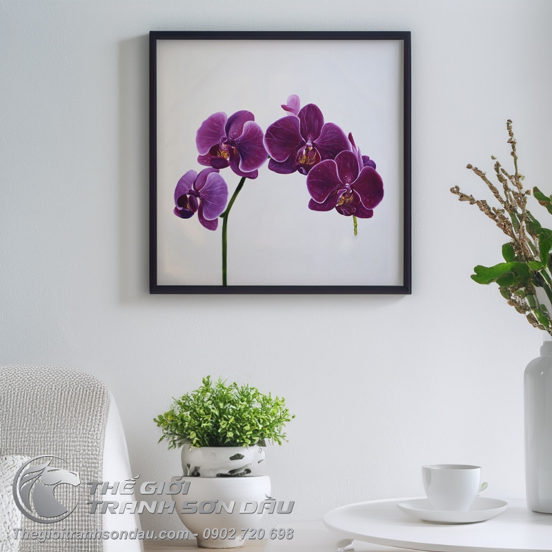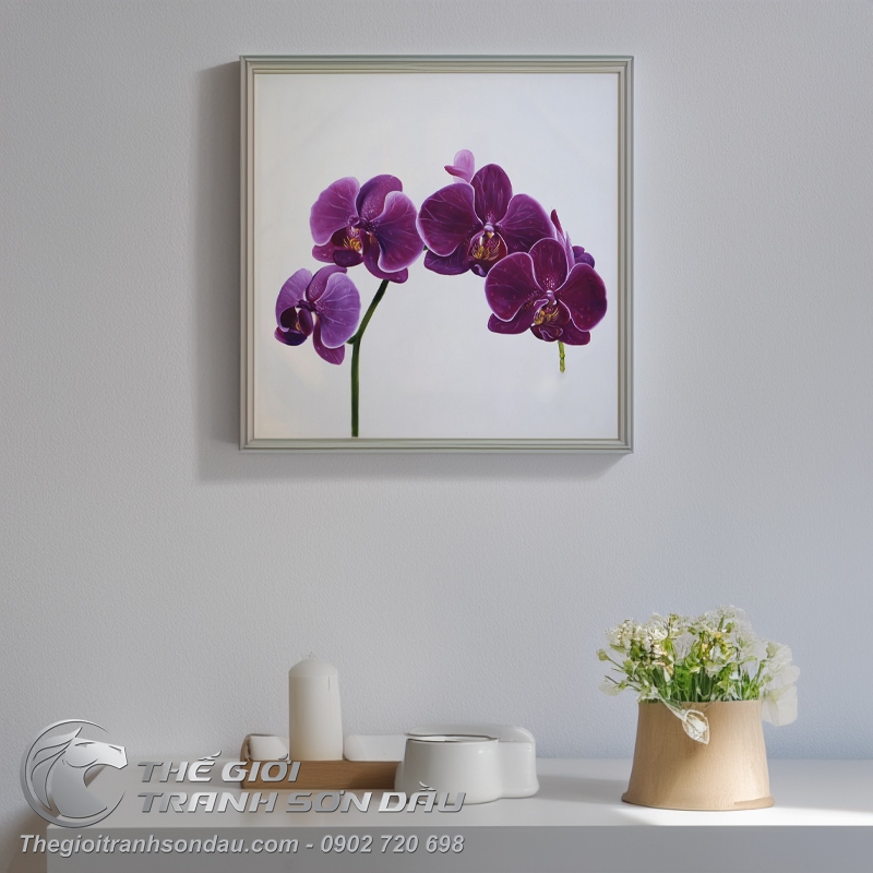 Tranh Sơn Dầu Vẽ Hoa Lan Tím Sang Trọng