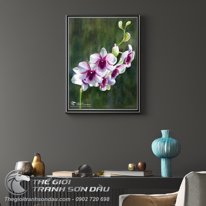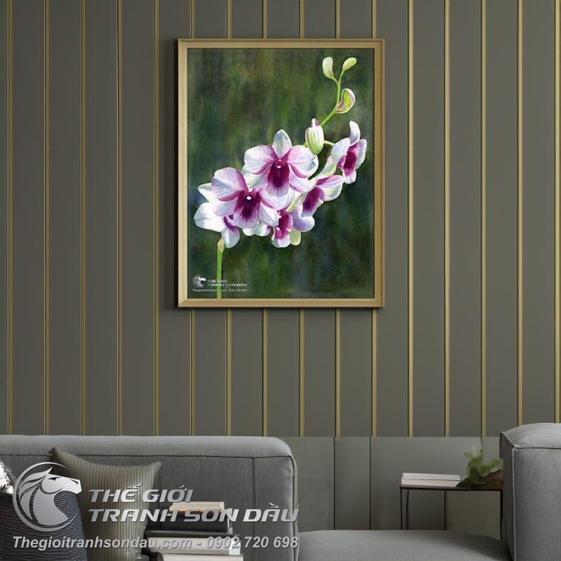Tranh Cành Hoa Lan Hồng Tả Thực
