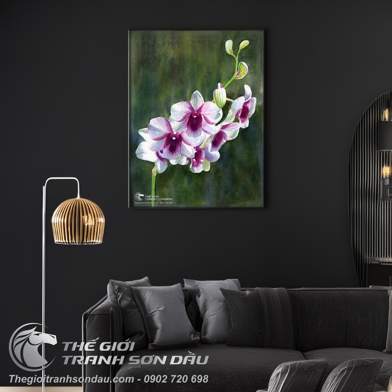 Tranh Sơn Dầu Vẽ Hoa Lan Tím Sang Trọng