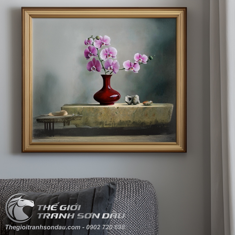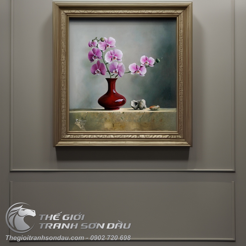 Tranh Sơn Dầu Vẽ Hoa Lan Tím Sang Trọng