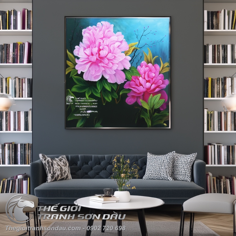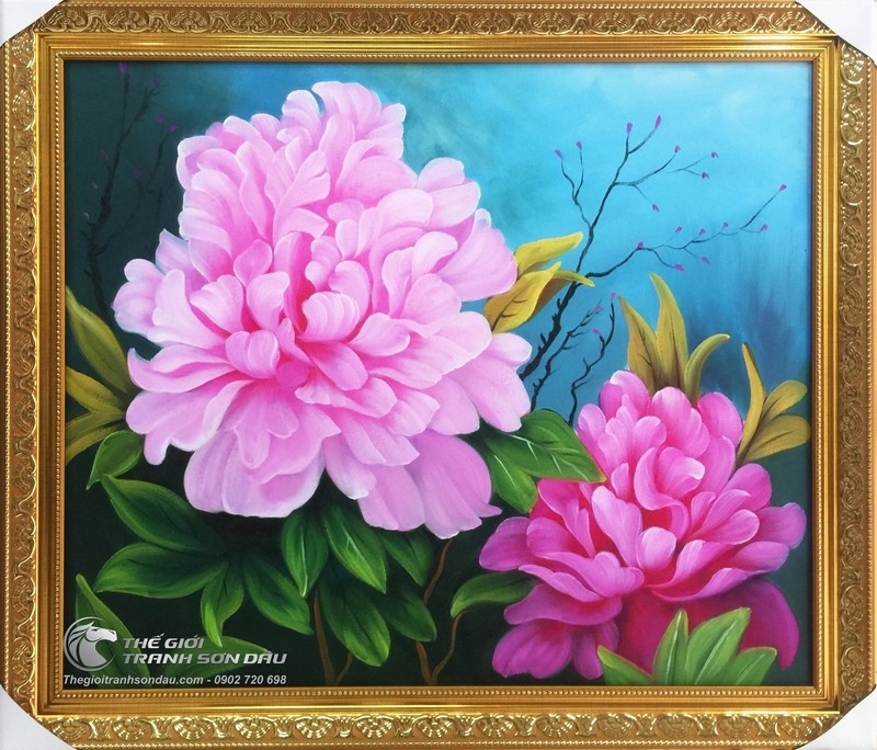 Tranh Hoa Mẫu Đơn Phong Thủy Vẽ Sơn Dầu