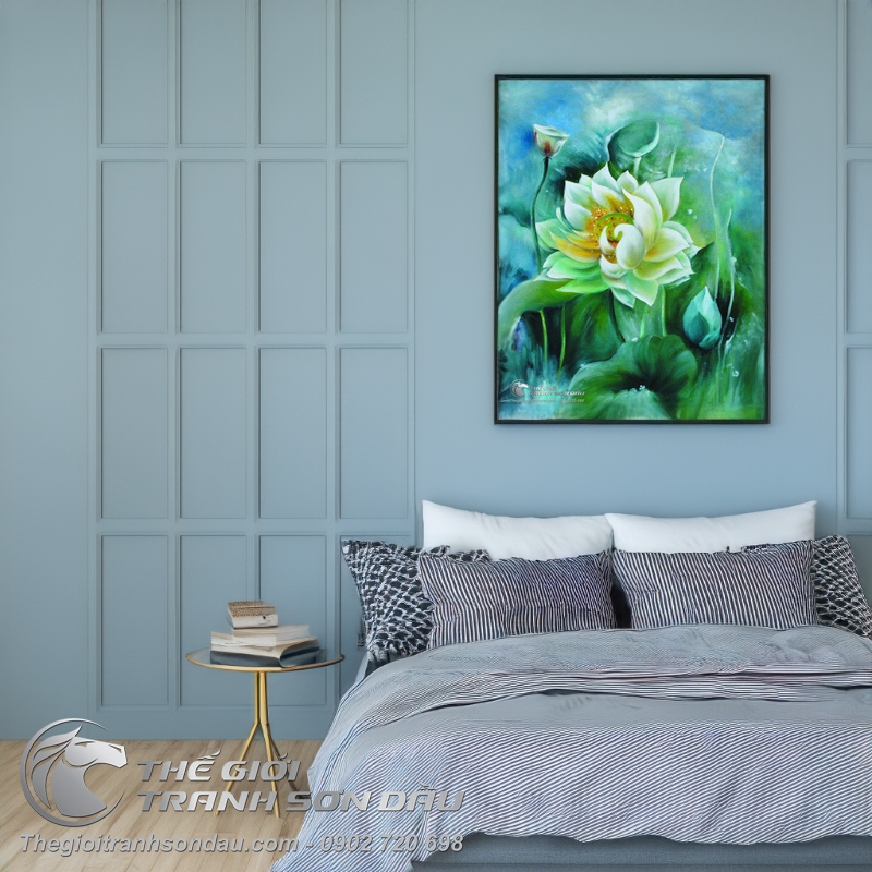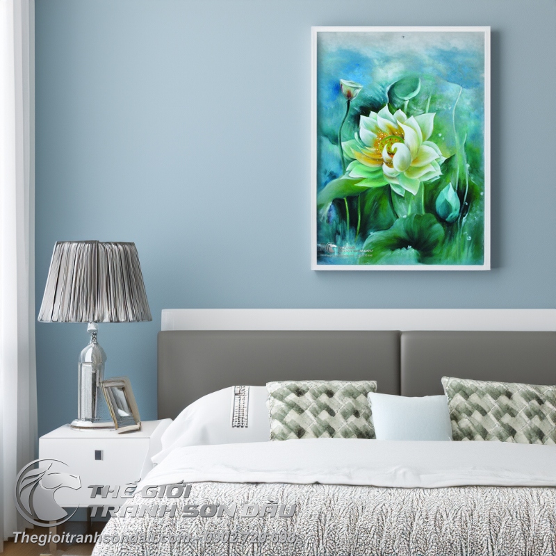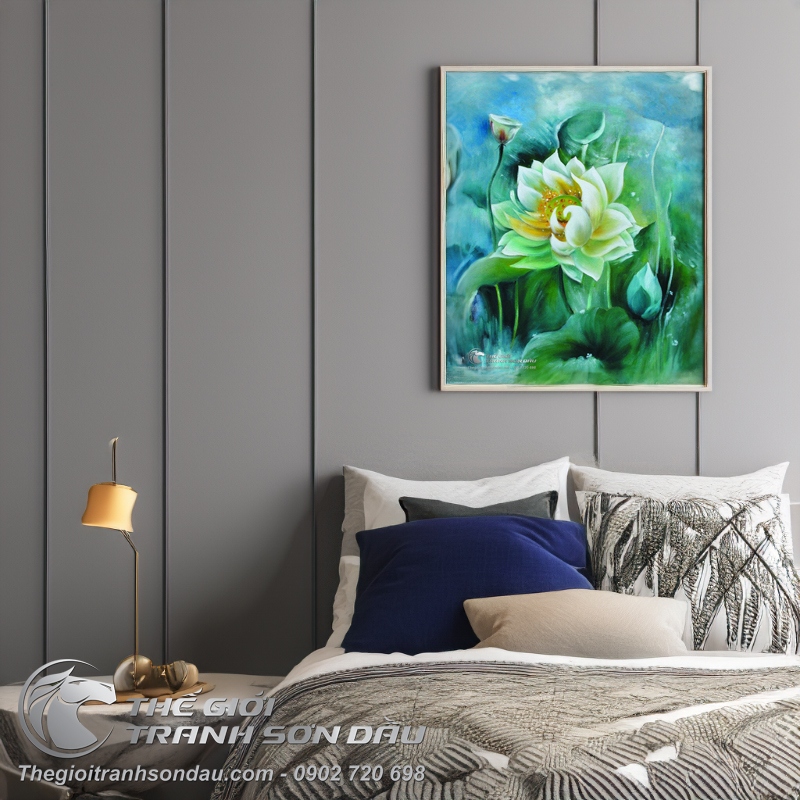 Tranh Sơn Dầu Hoa Sen Trắng Tả Thực