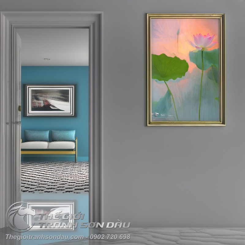 Tranh Hoa Sen Dày Màu Nghệ Thuật