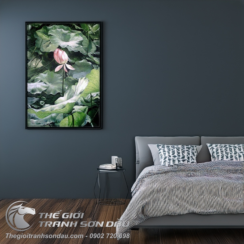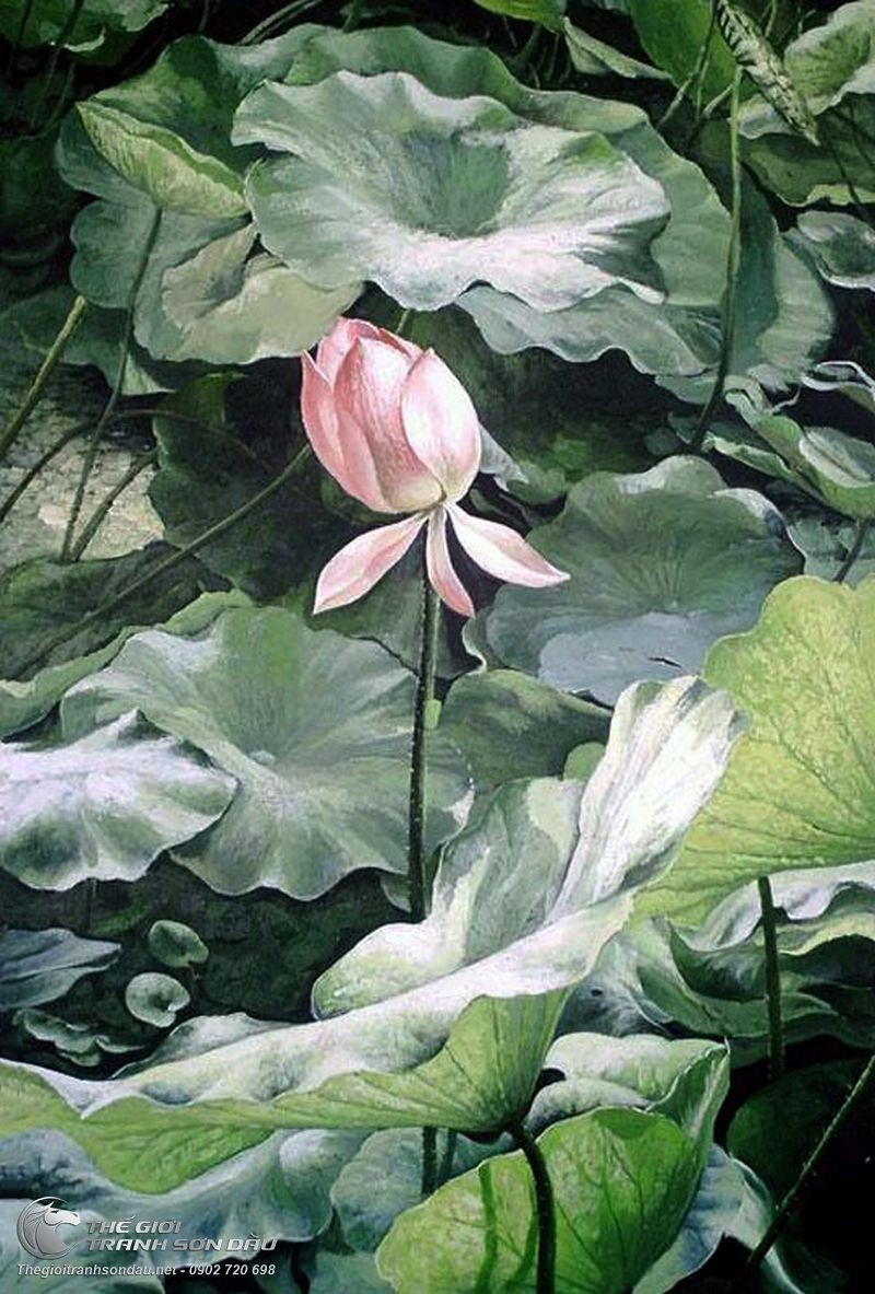 Tranh Sơn Dầu Hoa Sen Trắng Tả Thực