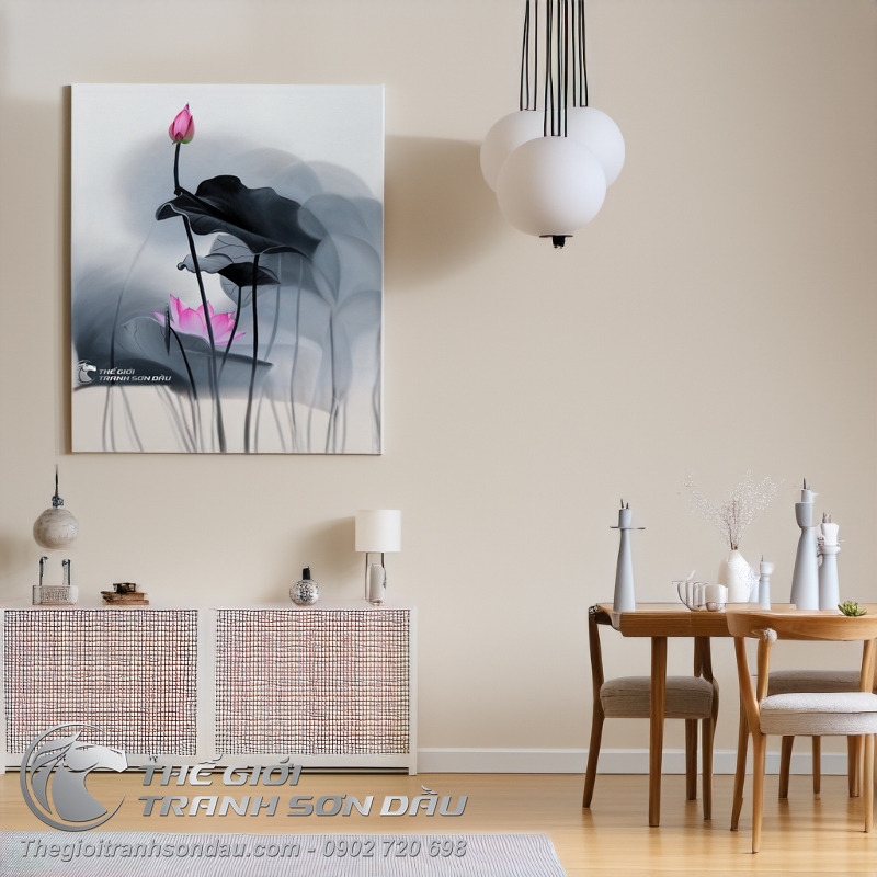 Tranh Hoa Sen Dày Màu Nghệ Thuật