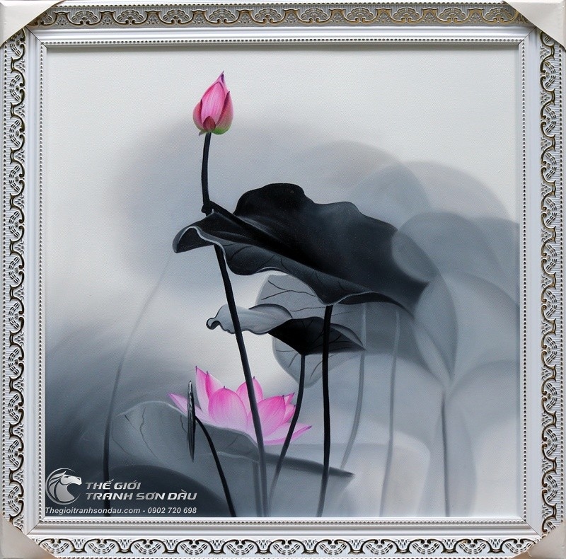 Tranh Sơn Dầu Hoa Sen Trắng Tả Thực