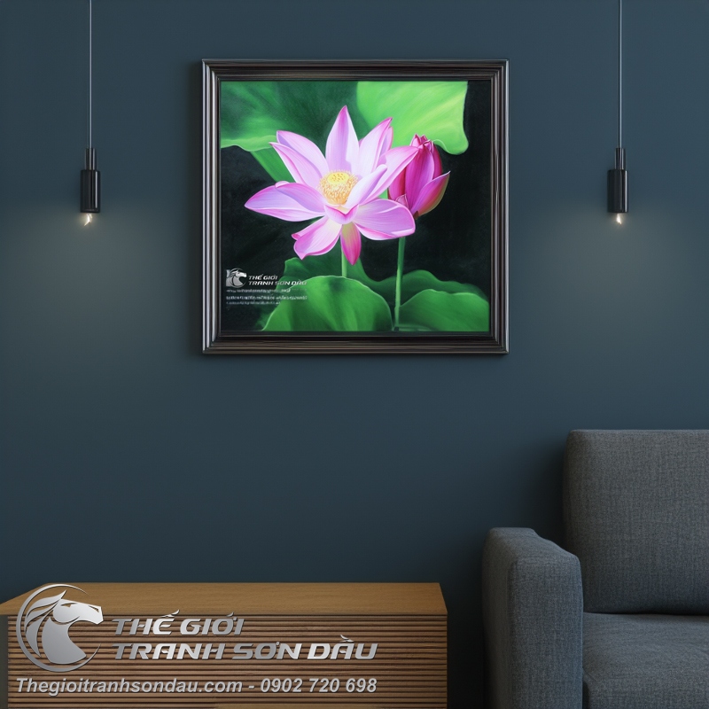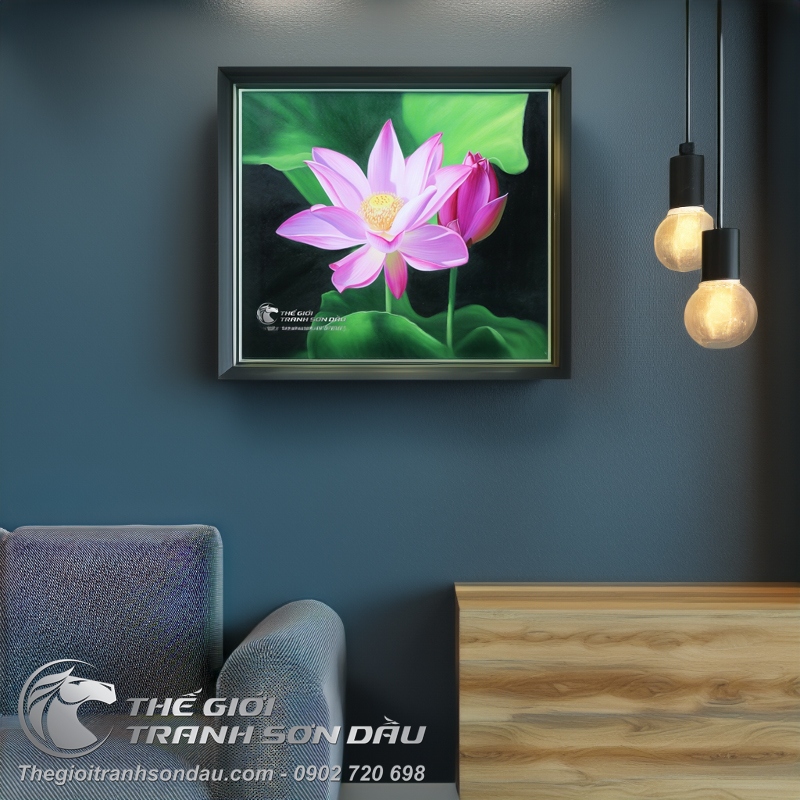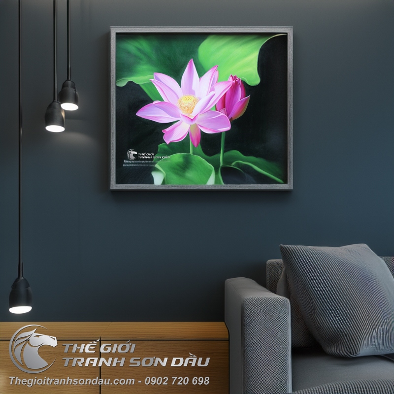 - Theo phong thủy, hoa sen tượng trưng cho sự thanh cao, thoát tục, giúp giải tỏa lo toan mang lại sự an nhiên và hạnh phúc. Treo tranh hoa sen trong nhà được xem là cách để ngăn chặn luồng khí xấu, điều hòa luồng khí tốt, tích cực, tăng cường sức khỏe, năng lượng, giúp đầu óc thư giãn, tâm hồn thanh lọc mát mẻ và tạo ra một không gian yên bình, thanh tịnh. Tranh hoa sen thuộc hành thủy mà thủy lại tượng trưng cho nguồn tài lộc, tiền tài và của cải, vì thế đây cũng là loài hoa đem đến nhiều sự may mắn, thịnh vượng và thăng tiến trong cuộc sống, biểu tượng cho cuộc sống giàu sang, dư giả, ấm no.