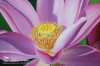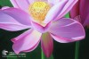 - Bằng việc khéo léo tạo ra sự tương phản giữa màu sắc hồng trắng của cánh hoa, vàng của nhụy và sắc xanh của lá cùng những nét vẽ điêu luyện, sự tinh tế trong việc tạo ra các mảng sáng tối, người họa sĩ đã tạo ra một bức tranh với hình ảnh của một bông sen đang nở rộ vô cùng đẹp, sắc nét và tinh tế, tạo cảm giác như bông sen đang phát sáng và tỏa ánh hào quang lấp lánh bên một nụ sen chớm nở.