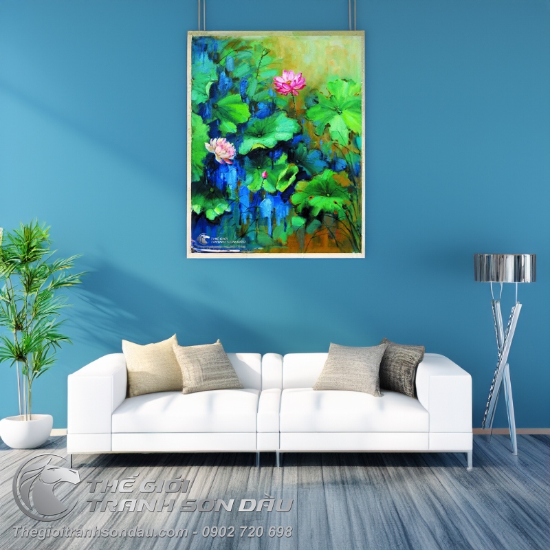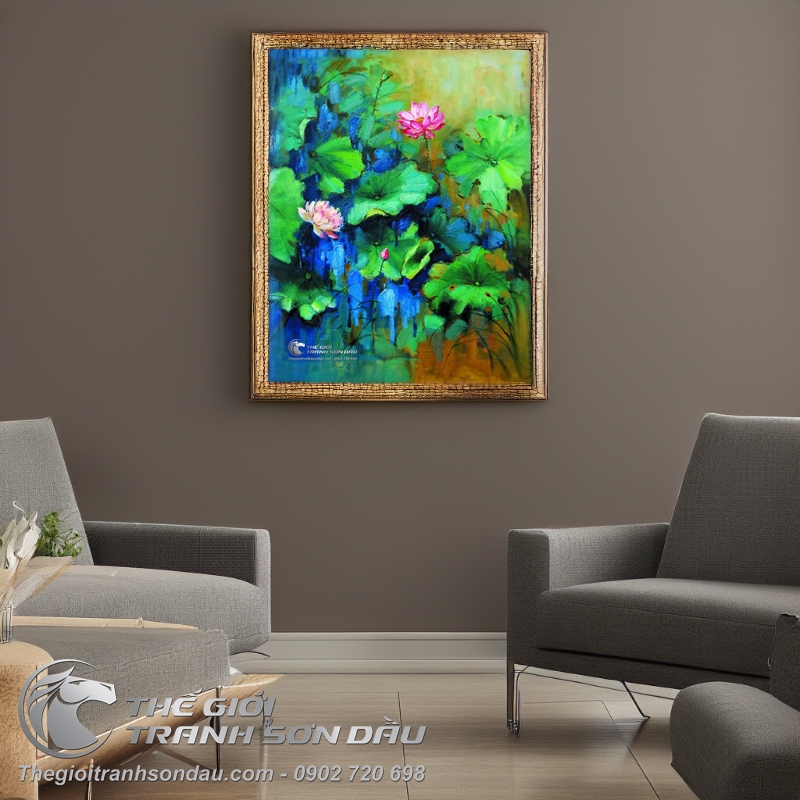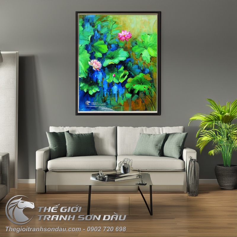 Tranh Sơn Dầu Hoa Sen Khổ Dọc