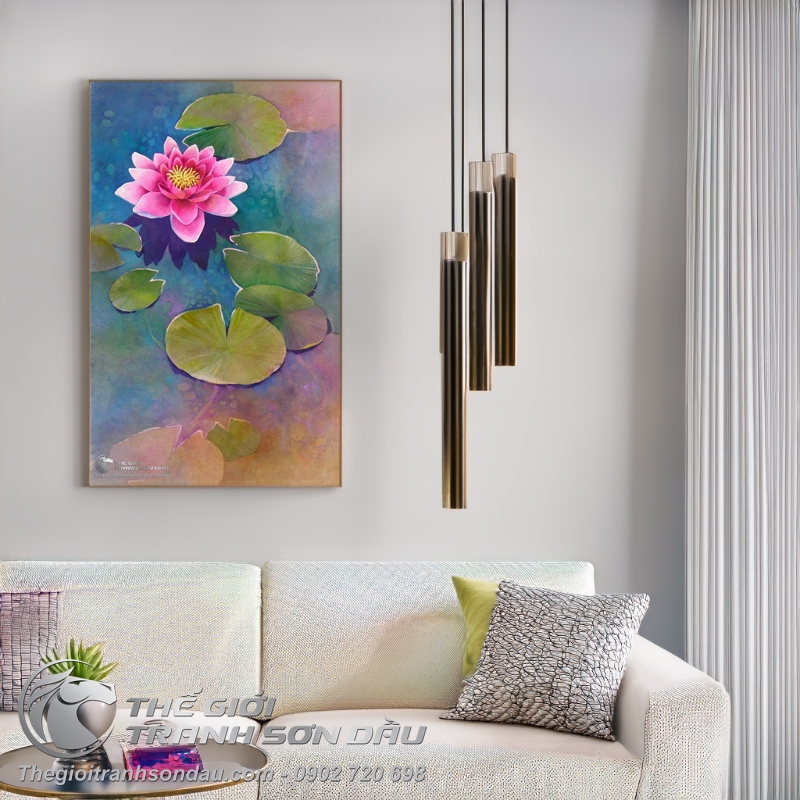 Tranh Hoa Sen Dày Màu Nghệ Thuật