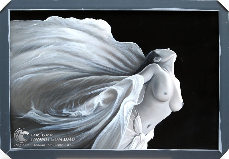 Tranh Khỏa Thân Cô Gái Bay Cùng Dải Lụa