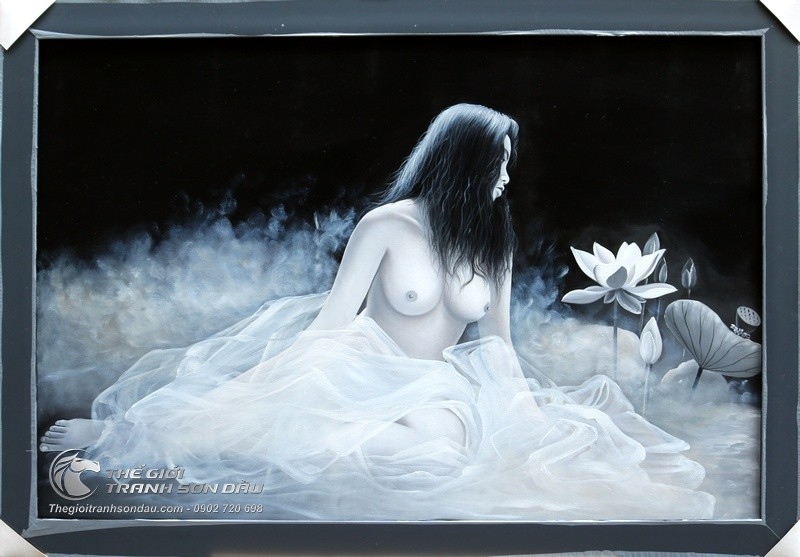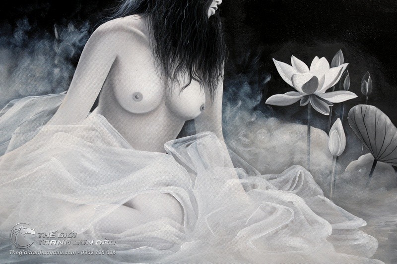 Tranh Thiếu Nữ Khỏa Thân Giữa Hoa Sen